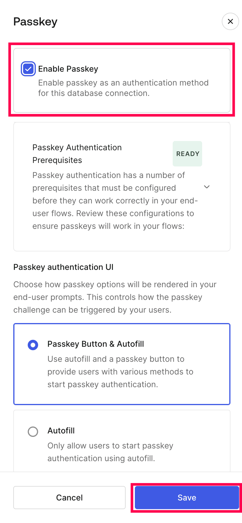 5. Enable Passkey チェックボックスを選択し、保存 をクリックします。