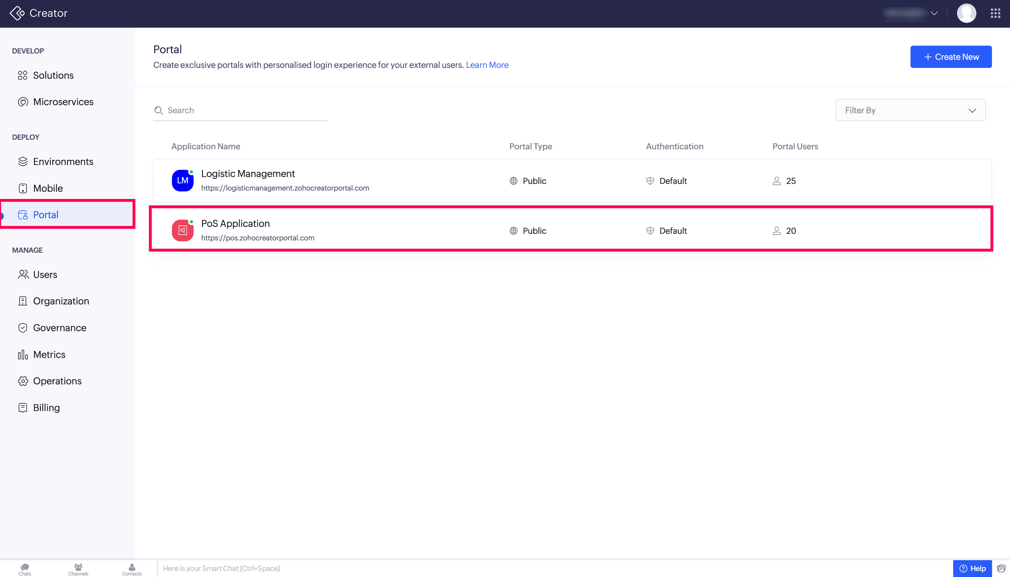 1. Creator アカウントのダッシュボードで、Deploy セクションの Portals に移動します。