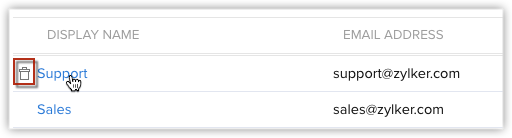 何らかの理由により使用しなくなった組織のメールアドレスは、削除できます。