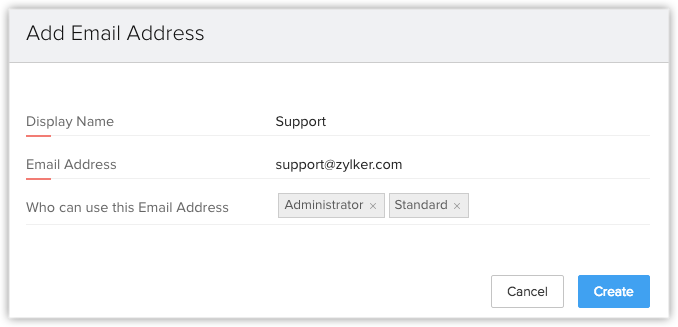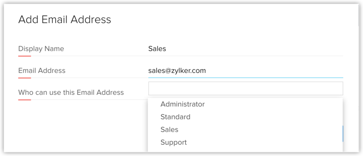 組織のメールアドレスには、複数のメールアドレスを設定できます。設定可能な組織のメールアドレス数の上限は、利用中のZoho CRMのプランに応じて異なります。