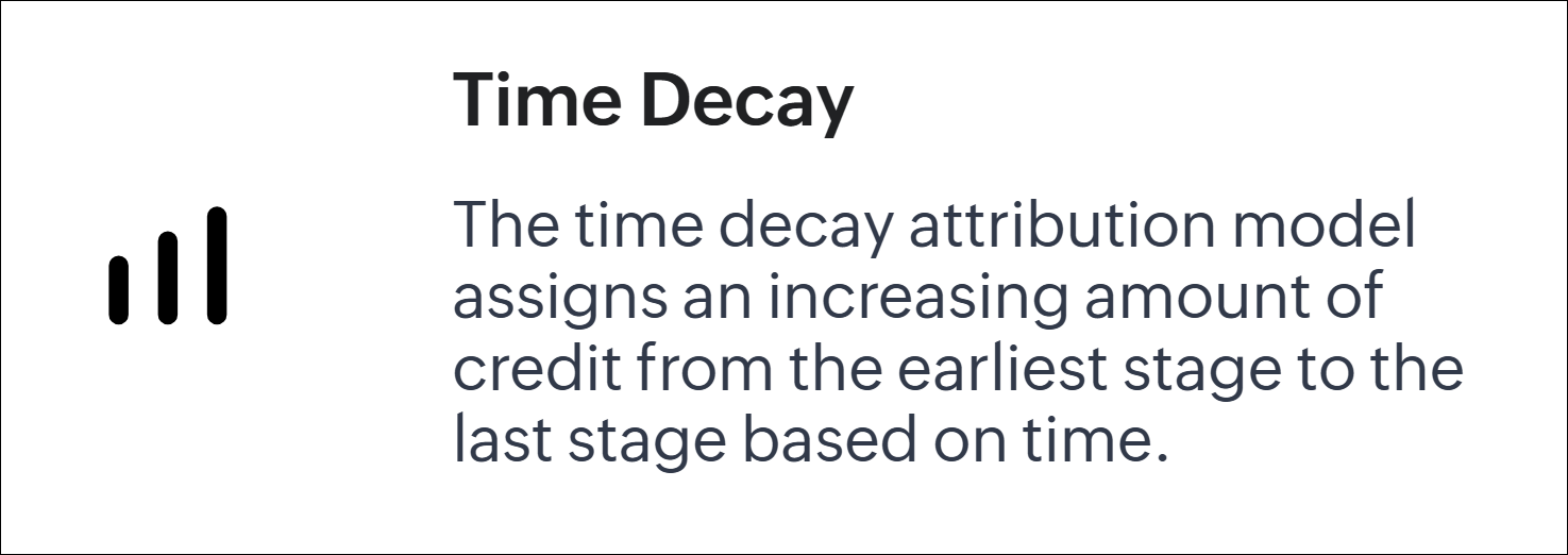時間減衰アトリビューションモデルでは、顧客に対するマーケティング活動における最新のタッチポイントに対して、貢献度がより多く割り当てられます。営業サイクルが比較的長く、初期のタッチポイントが必ずしも最重要ではない場合に、時間減衰モデルが役立ちます。たとえば、見込み客が一旦パイプラインに乗った後は、見込み客に対するナーチャリング活動がより重要になるとします。したがって、初期のステージに売上貢献度を過度に割り当てるのではなく、時間減衰モデルでは、購入者を売上に移行した最新のタッチポイントに対してより多くの貢献度が割り当てられます。