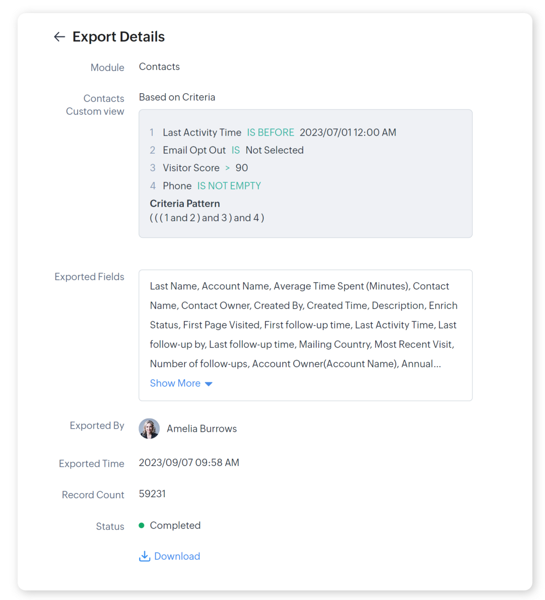 Zoho CRMでは、組織の要件に合わせてZoho CRMに保存されているデータをエクスポートできます。データの共有や分析、バックアップの管理などを行う際に役立ちます。