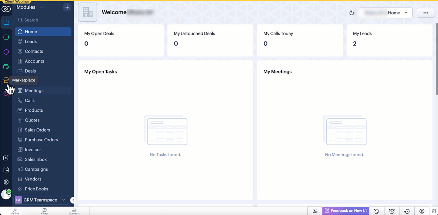 4. サンドボックスで、[設定]→[マーケットプレイス]→[Zoho]の順に移動します。