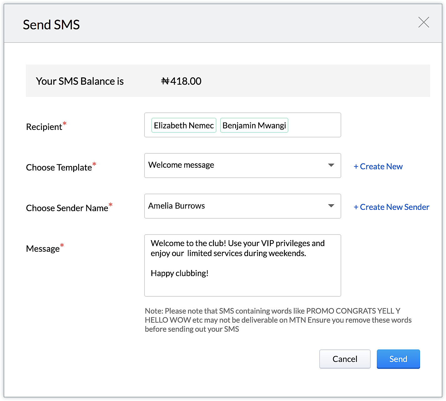 NaijaSMSPortal拡張機能を利用すると、見込み客/連絡先に対して個別にSMSメッセージを送信できます。また、複数の見込み客/連絡先に対して一括でSMSメッセージを送信することも可能です。