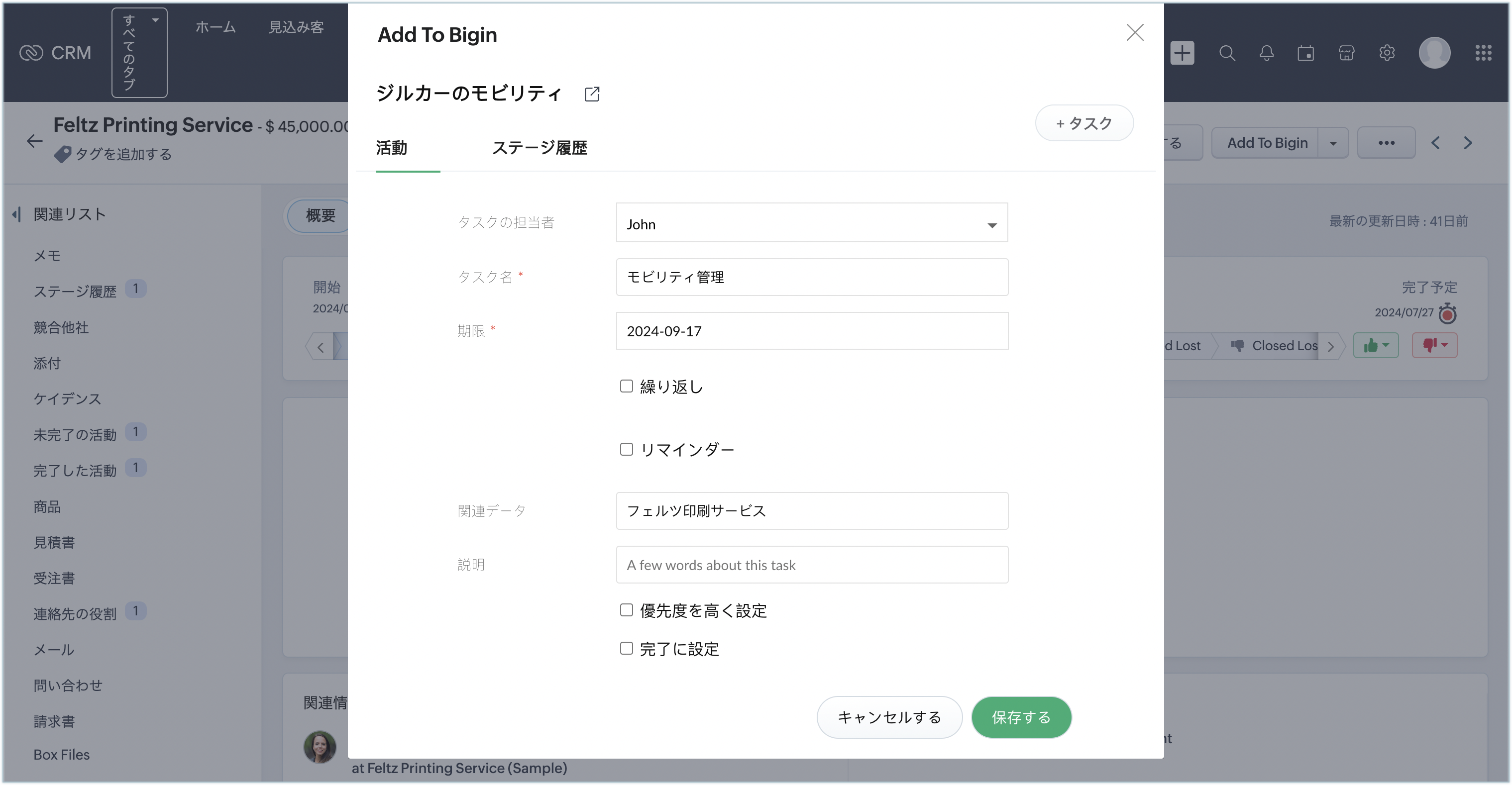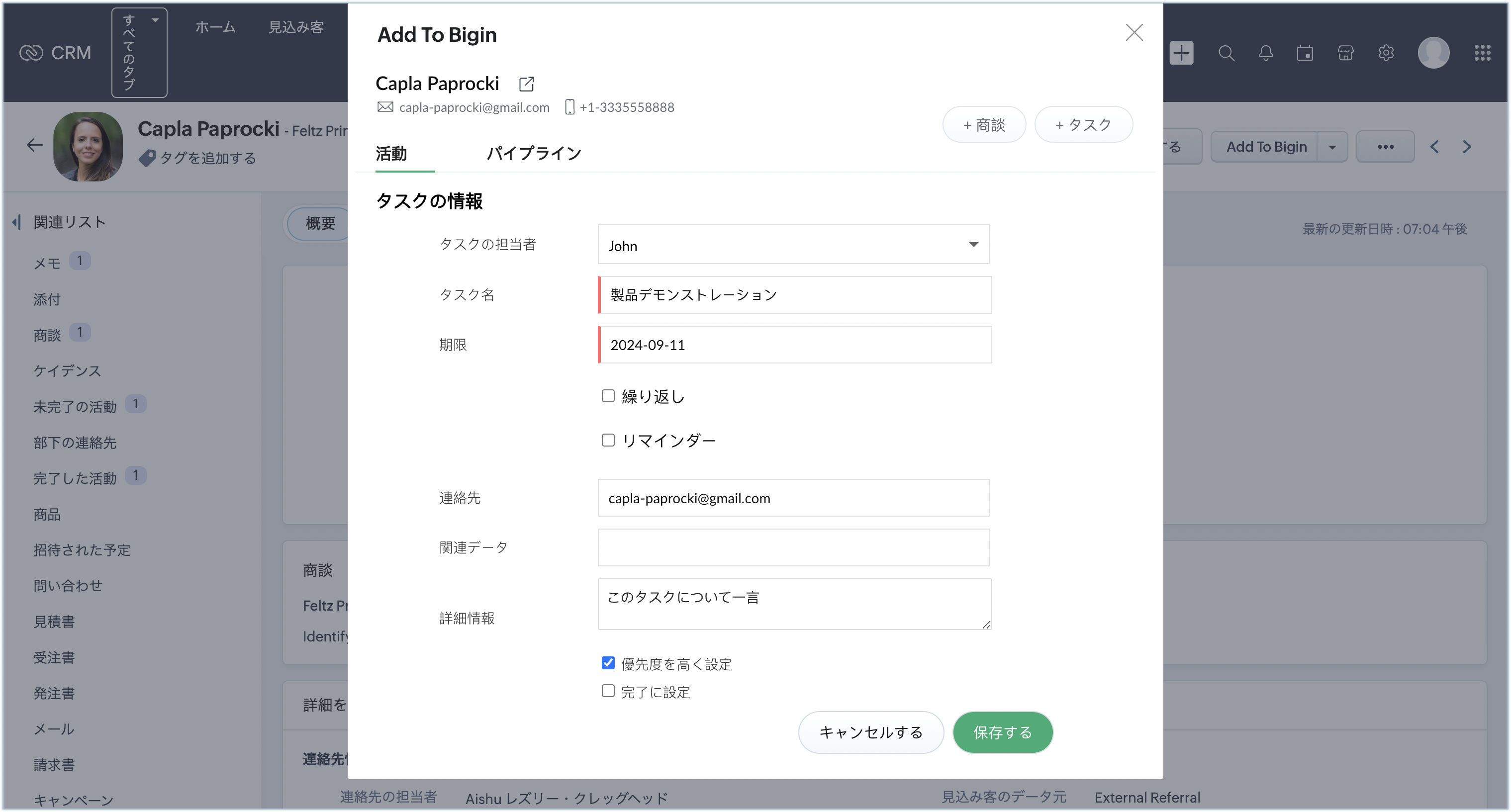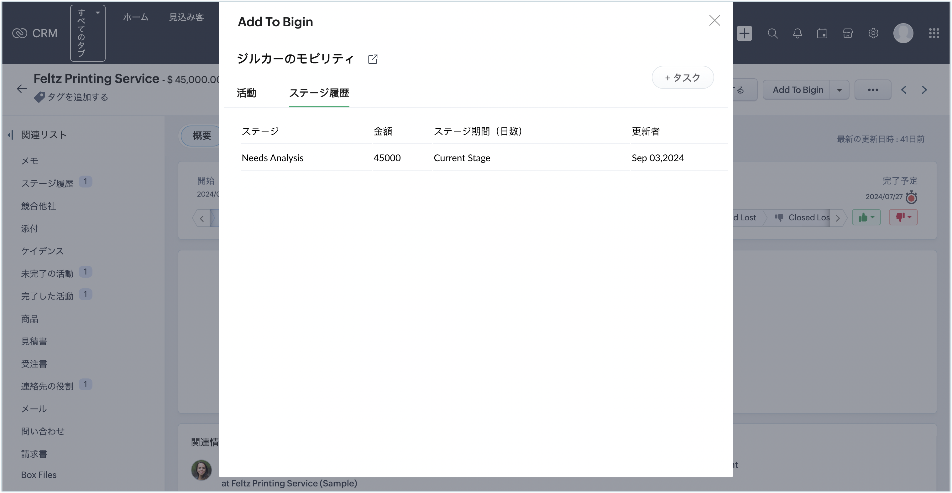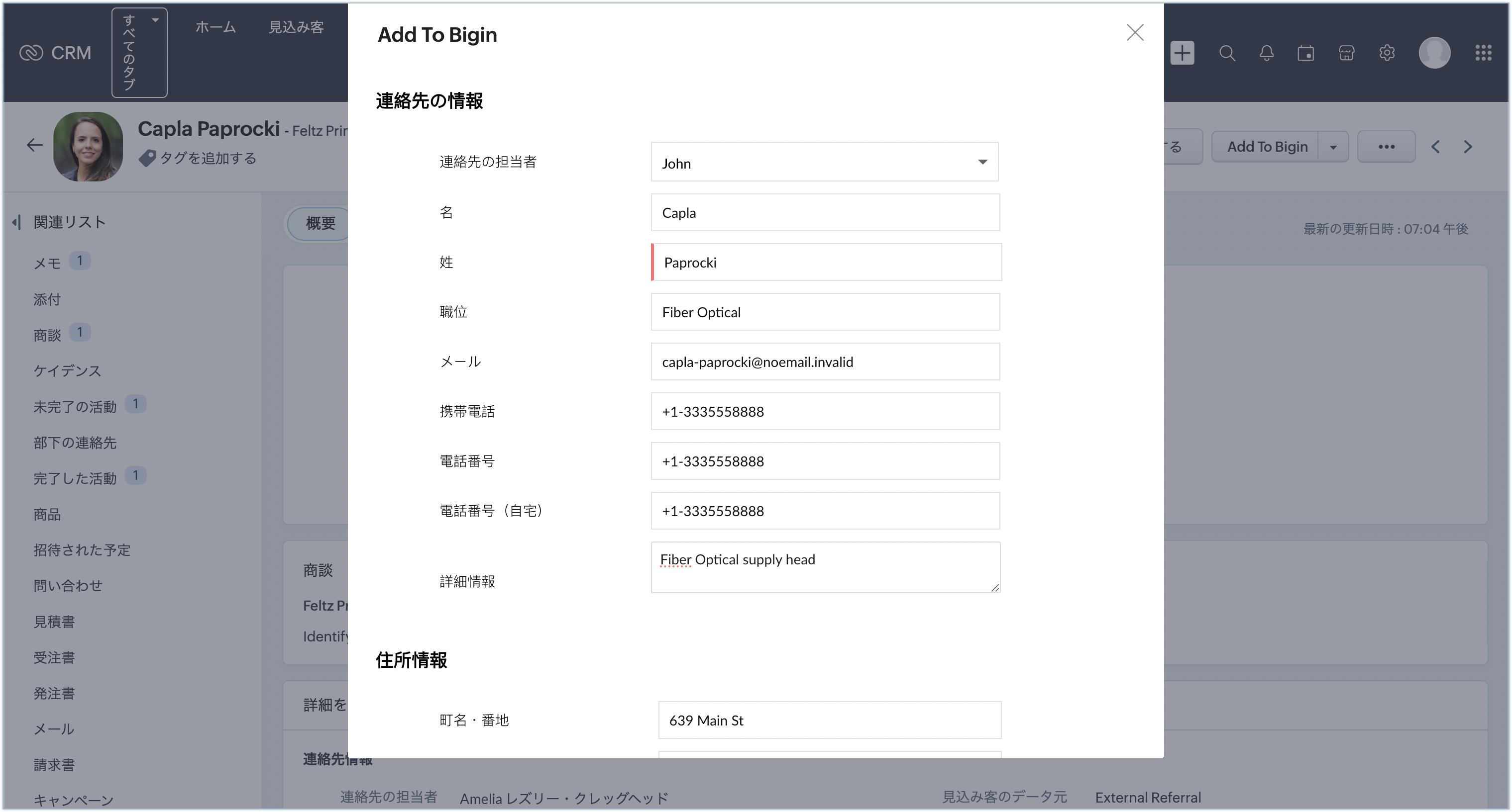 データに関連付けられているタスクと商談は、Zoho Biginの対応するデータに追加されます。