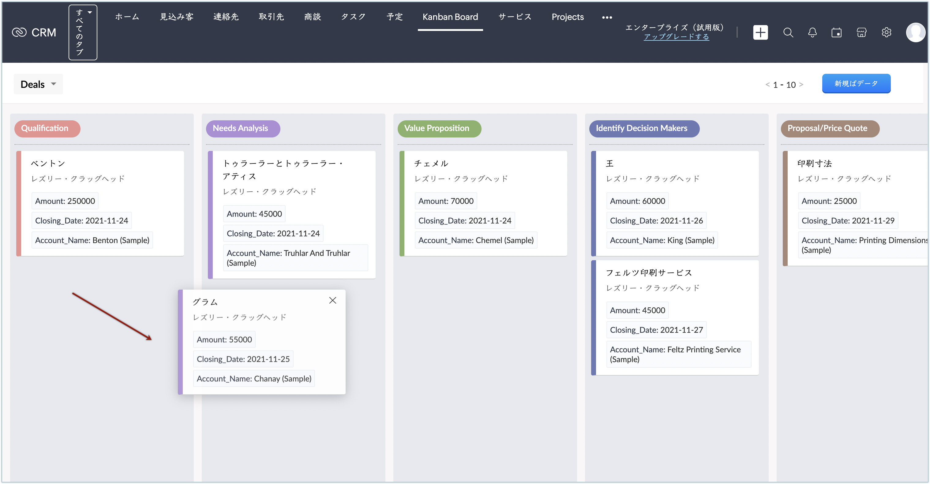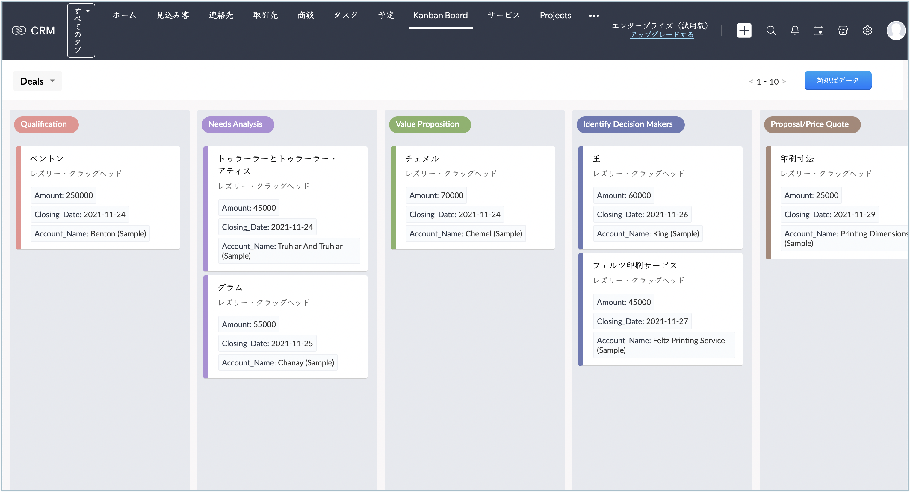 Zoho CRM内のデータが増えても、Kanban Board(かんばんボード)拡張機能を利用することで、必要なデータをかんばん(カード)形式で見やすく整理できます。データの管理や確認をしやすくすることが可能です。たとえば、商談用のボードを作成し、ステージごとに列を分けてデータを表示できます。これにより、全体の進捗とともに、各ステージの商談の概要を簡単に確認できます。 ...