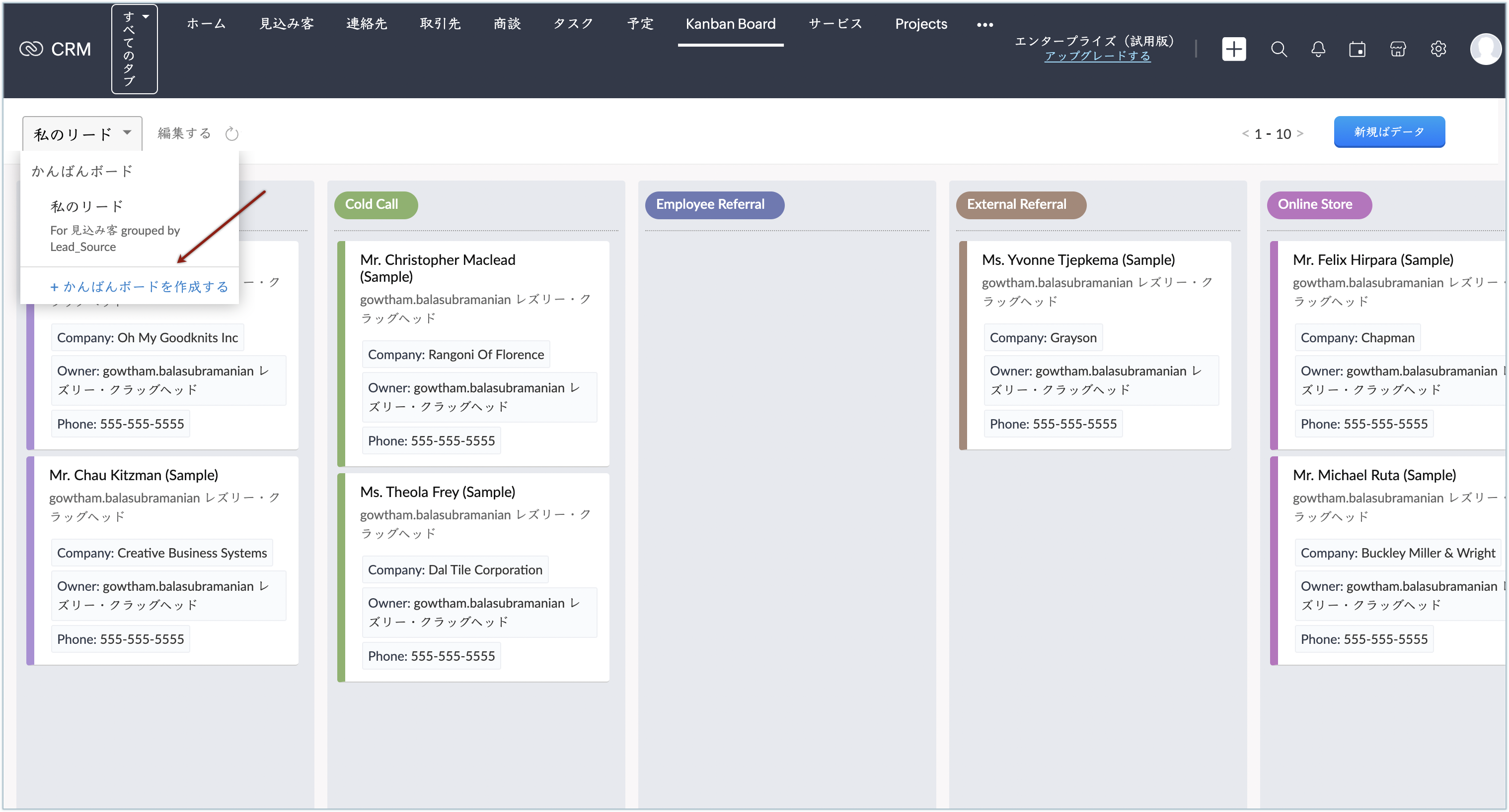 1. [Kanban Board]タブをクリックします。