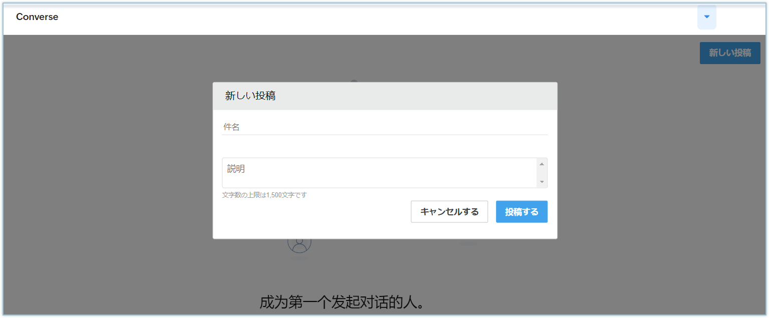 投稿を作成し、コメントを通じて他のユーザーと会話できます。また、他のユーザーのコメントに返信することもできます。コメントでメンションすると、組織内の他のメンバーを参照して通知できます。メンションする場合、メンバー名の前に「@」記号を追加します。例:@川根 太郎