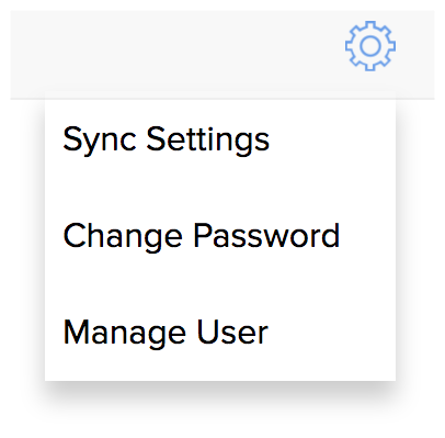 [IBM Notes Sync](IBM Notesとの同期)のページで設定アイコンをクリックすると、同期の設定、パスワードの変更、ユーザーの管理のメニューを選択し、それぞれの設定画面に移動できます。