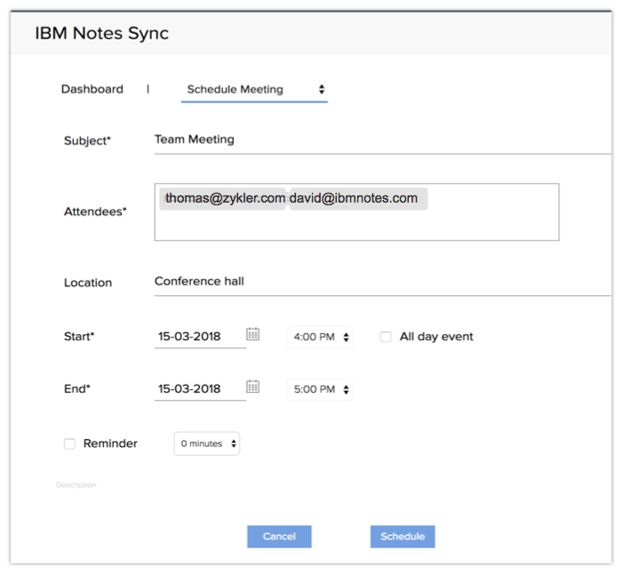 IBM Notesで非公開のデータはZoho CRMと同期されません、その逆も同様です。