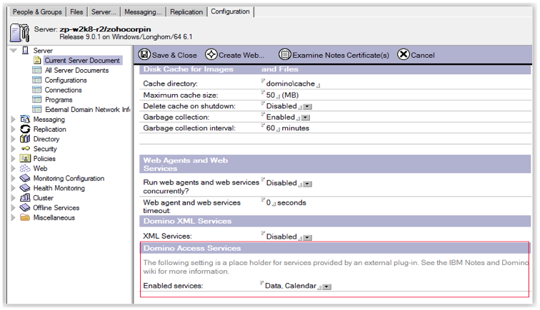 Dominoアクセスサービスは、初期設定では無効になっています。サーバー、データベース、IBM Notesのビューにアクセスするには、管理者が有効にする必要があります。