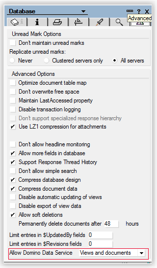 • データベースでのDominoアクセスサービスの有効化についての詳細はこちら
