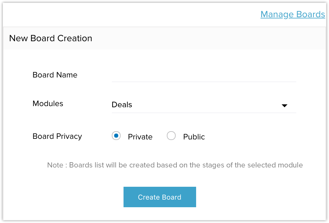 1. [New Board Creation](新しいボードの作成)画面で、[Manage Boards](ボードの管理)をクリックします。