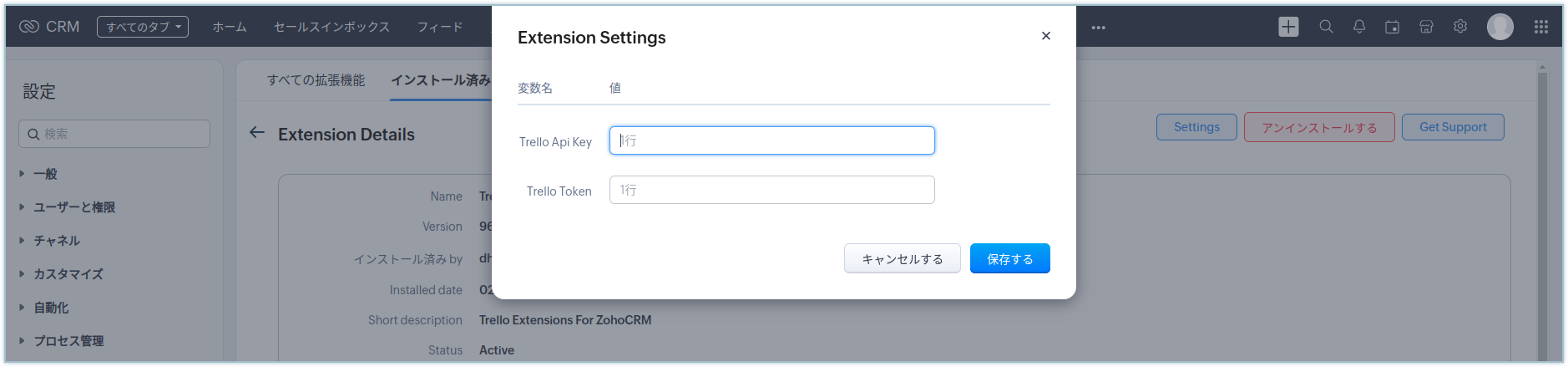 Zoho CRMの管理者権限を持つユーザーは、他の管理者ユーザーや特定の権限を持つユーザーに対してこの拡張機能をインストールできます。