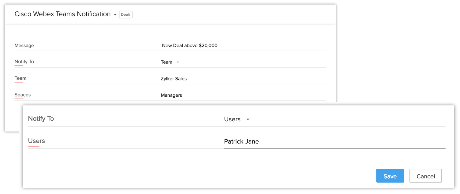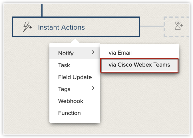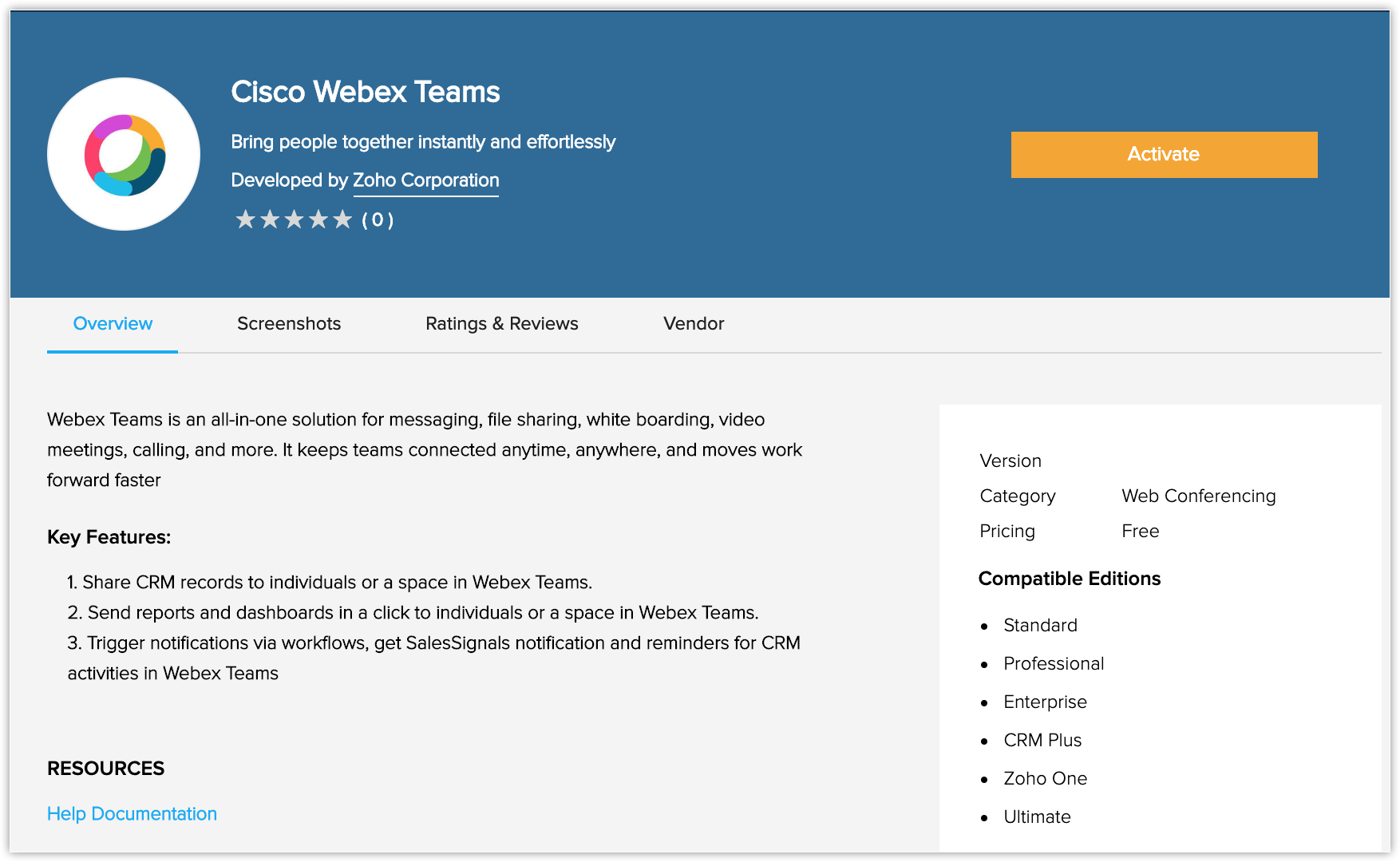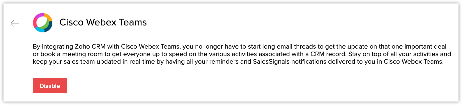 Zoho CRMのCisco Webex Teams拡張機能を無効にすると、ワークフロールールと[すぐに実行する処理]の関連付けは解除されます。拡張機能を有効にすると、ワークフロールールと[すぐに実行する処理]が、再度関連付けられます。