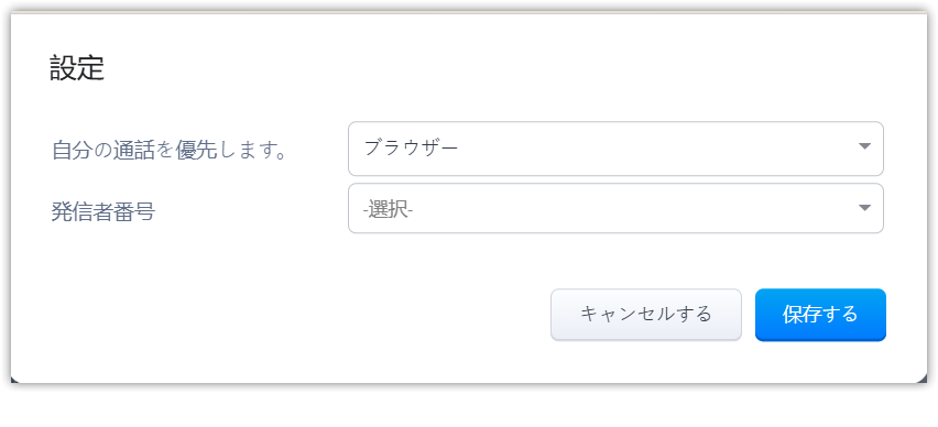 初期設定では、ブラウザー経由で発信できるように、通話設定ポップアップで通話設定に [ブラウザー] が選択されます。