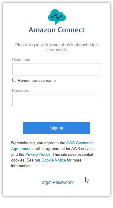 - Zoho CRMでAmazon Connectアカウントにログイン