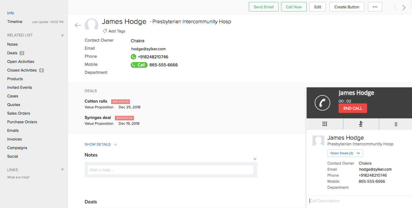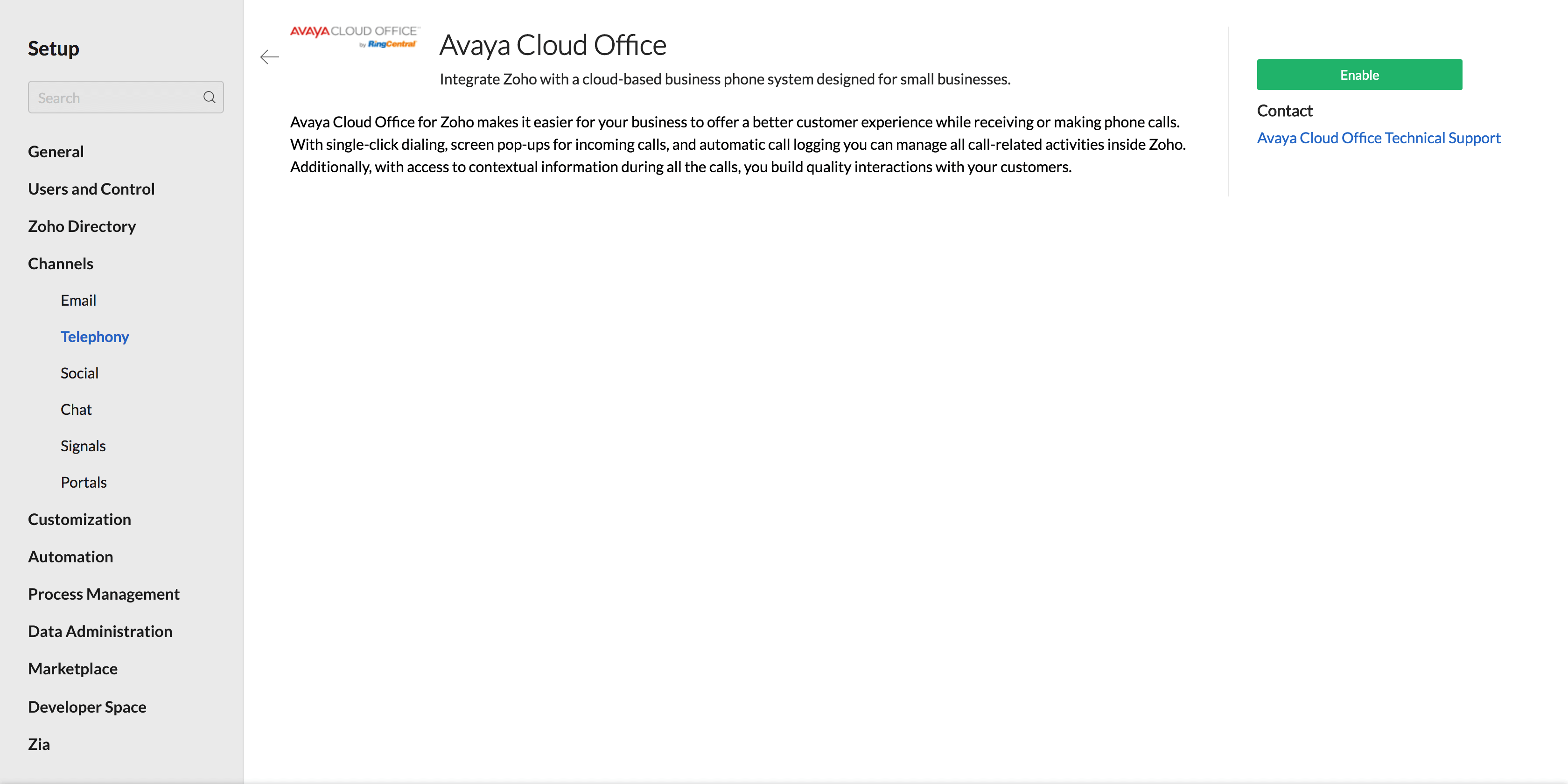 Avaya Cloud Officeを有効にし、Avaya Cloud OfficeアカウントとAvaya Cloud Officeソフトフォンにログインすると、Avaya Cloud Office連携の設定は完了です。Zoho CRMで着信通話の受信、発信通話の開始、フォローアップ活動の追加などの操作が行えるようになります。