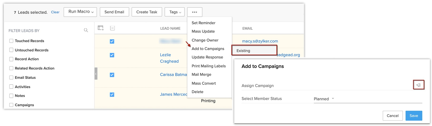特定の見込み客にキャンペーンを関連付けるには、次の手順を実行します。