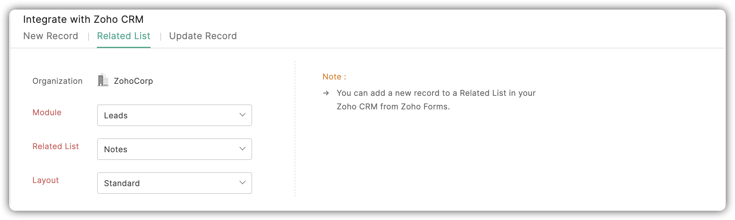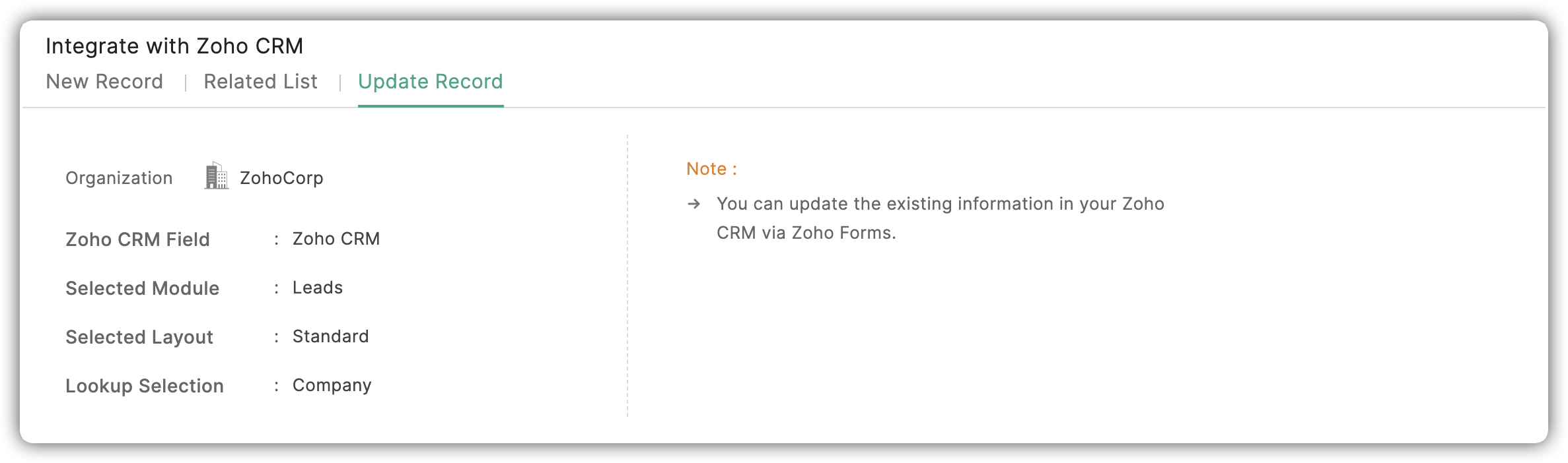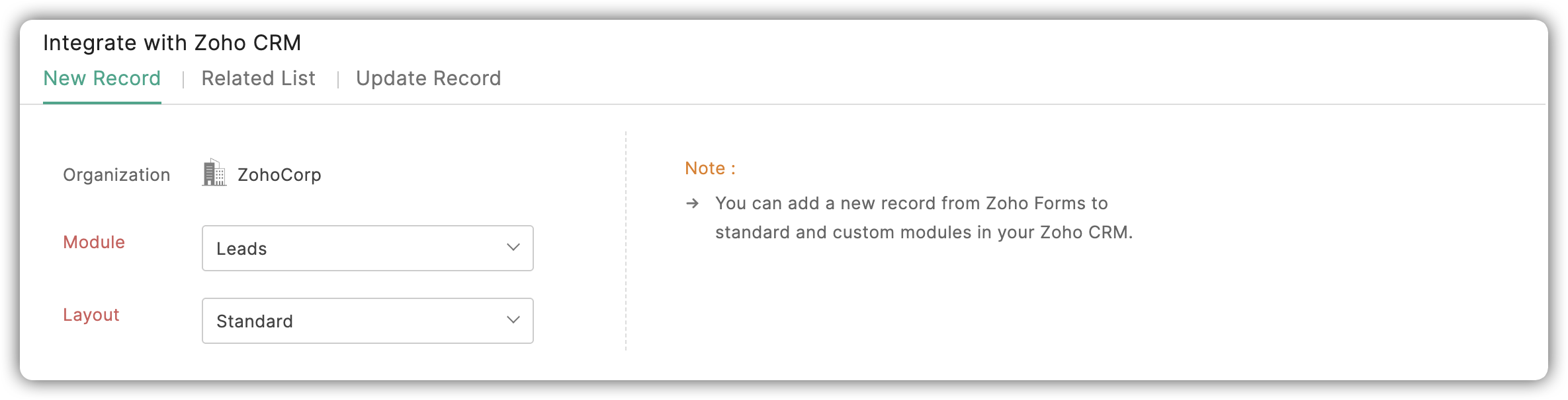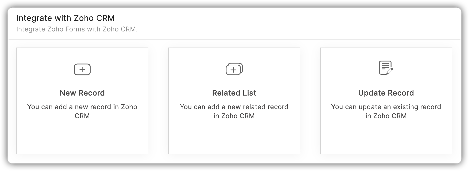 関連情報:Zoho FormsとZoho CRMの連携において実行できる処理