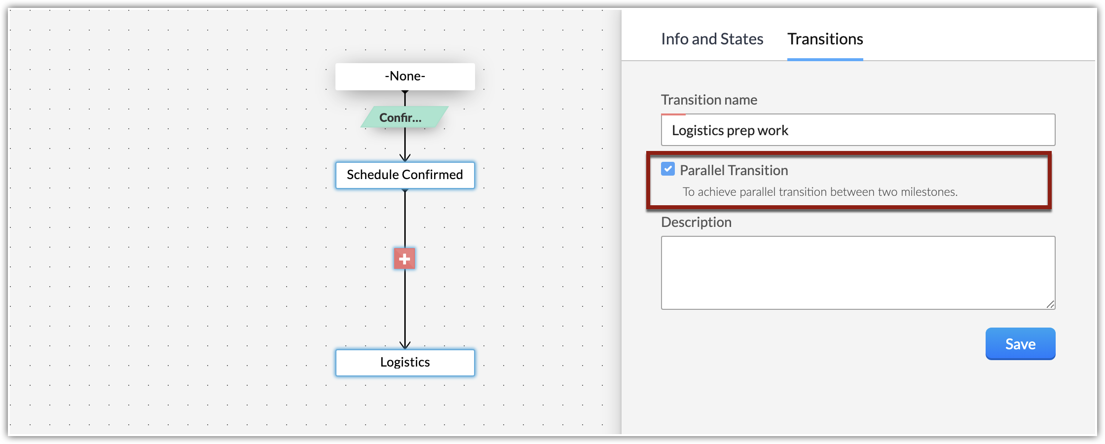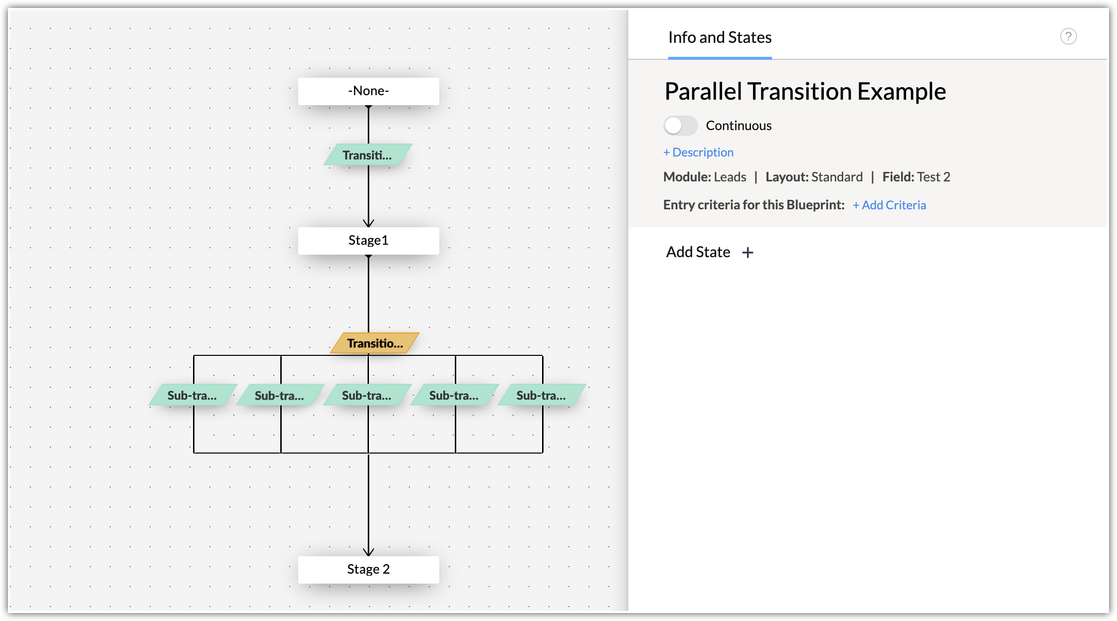 並行遷移を利用することで、ブループリントが見やすく、すっきりと整理されます。また、遷移ごとにさらに作業項目を追加することも容易になり、業務の流れを柔軟に設定できます。