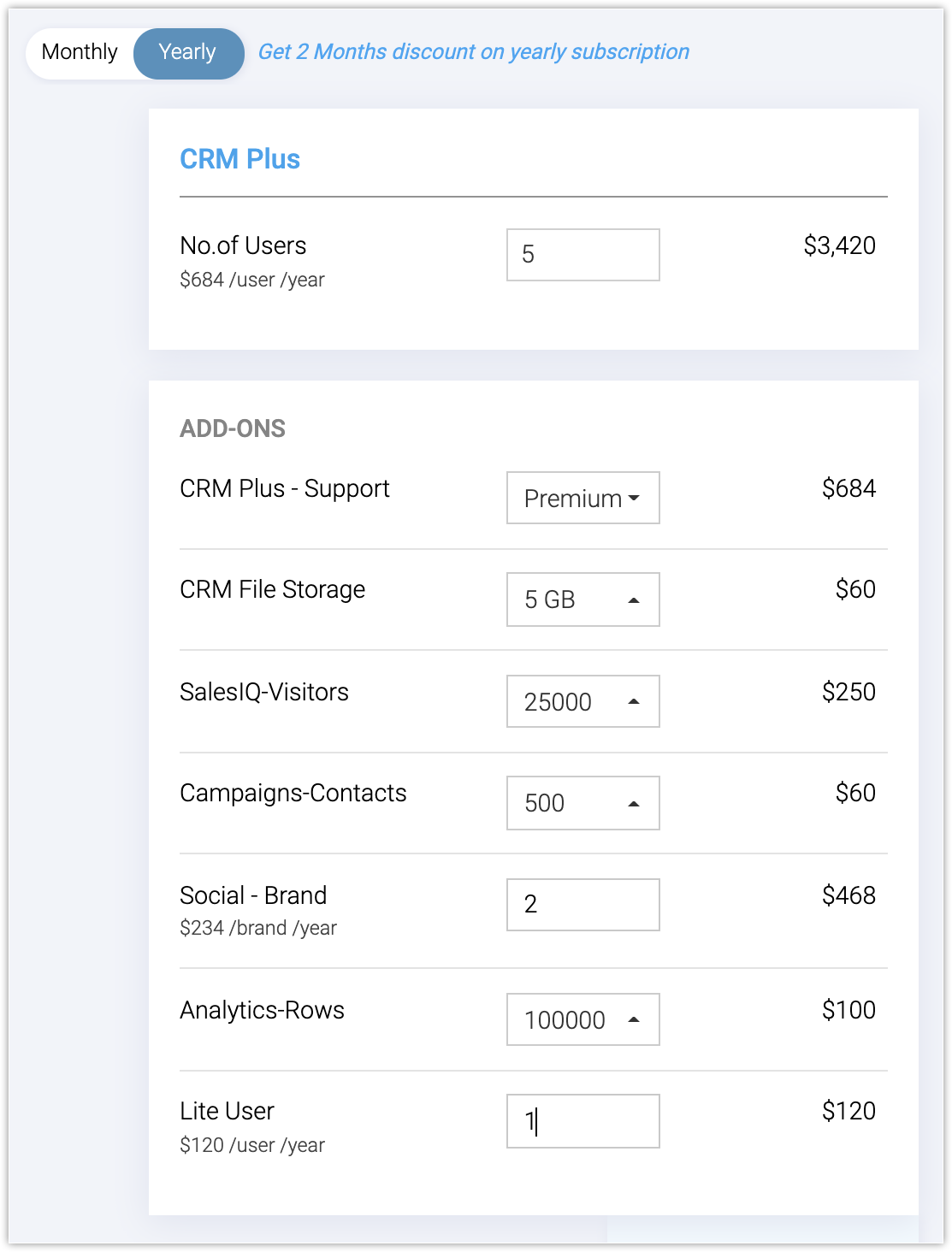 • Zoho CRM Plusに含まれているサービスのいずれかの有料プランにすでに登録しており、その後にZoho CRM Plusに登録した場合、料金が重複しないように支払い額が調整されます。