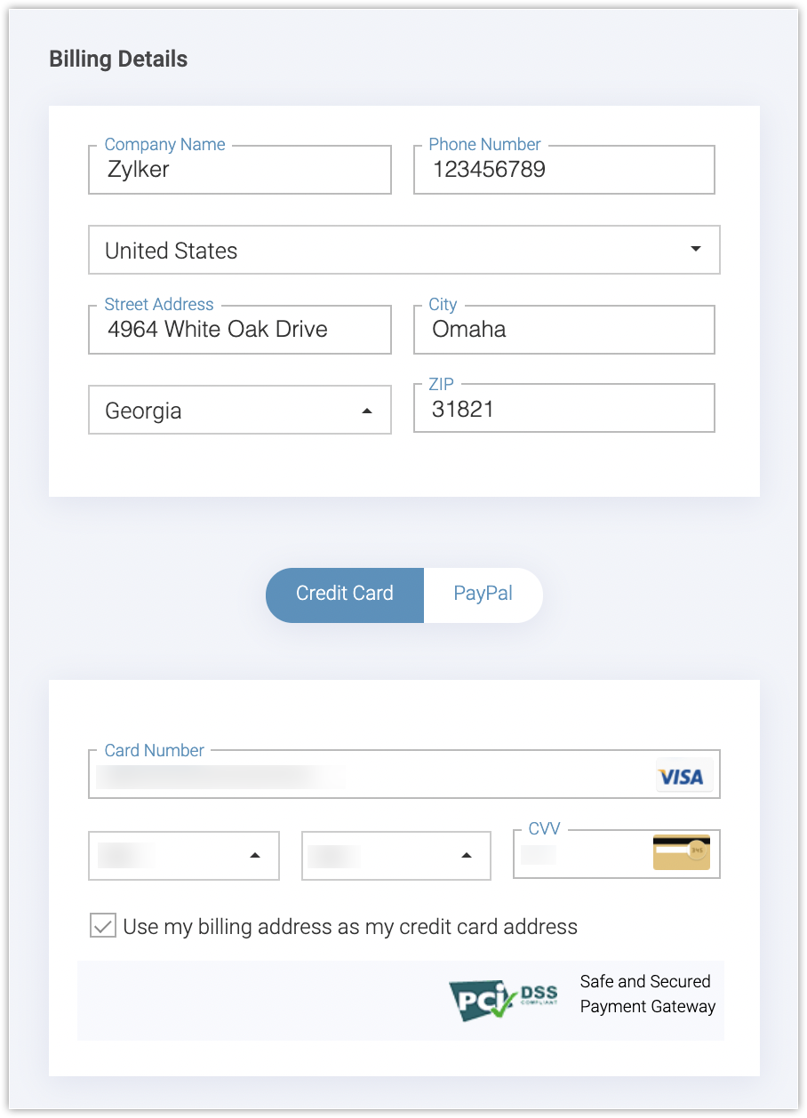 CRM Plusのサブスクリプション料金の支払いには、クレジットカード、PayPal、デビットカード、ネットバンキング、ウォレット(Zoho Wallet)、UPI(インドの決済システム)を利用できます。表示される支払い方法は、選択した通貨や支払い期間によって異なります。