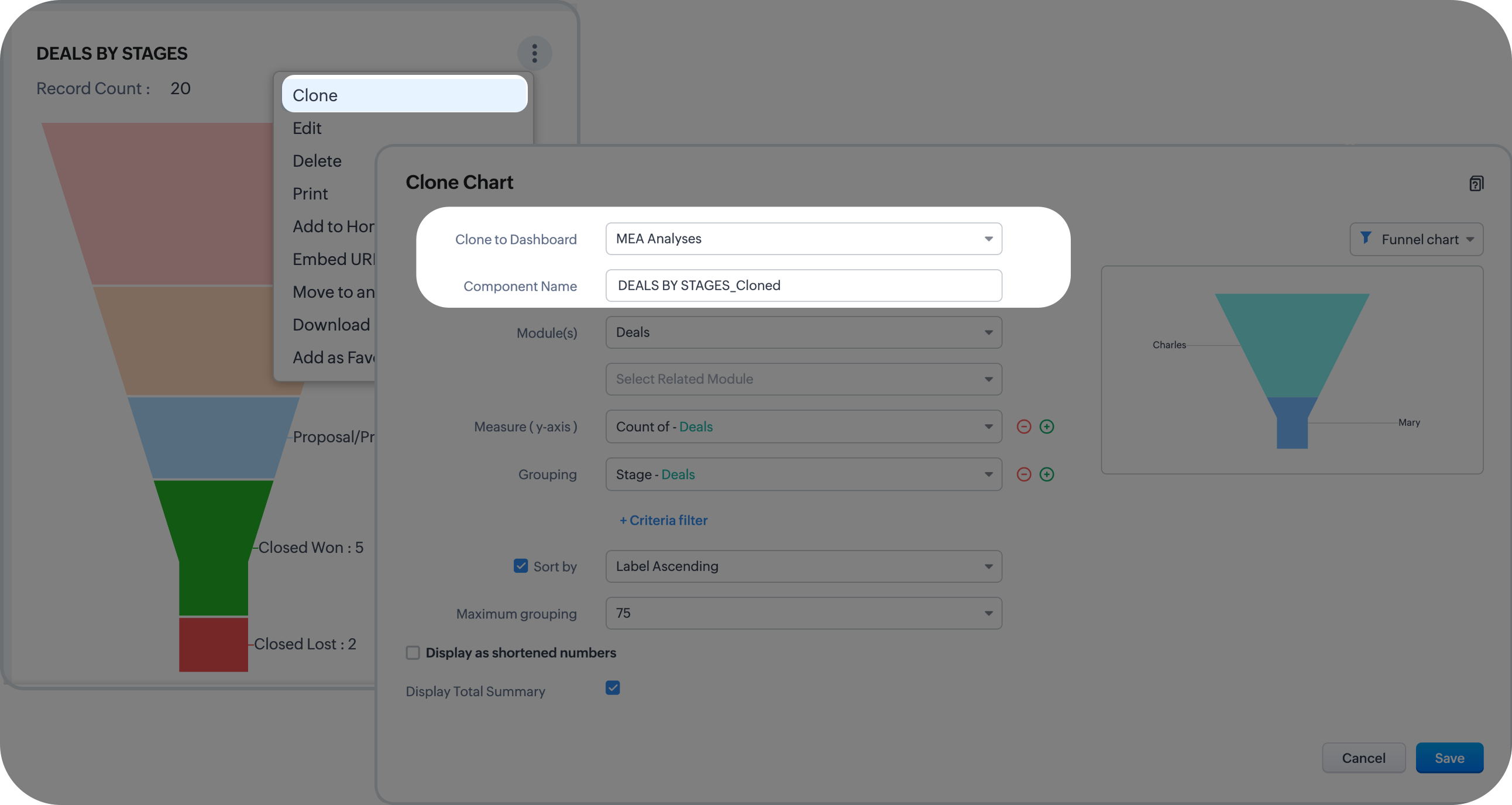- ロック中のダッシュボードは、ダッシュボード作成者とZoho CRMの管理者のみが変更できます。