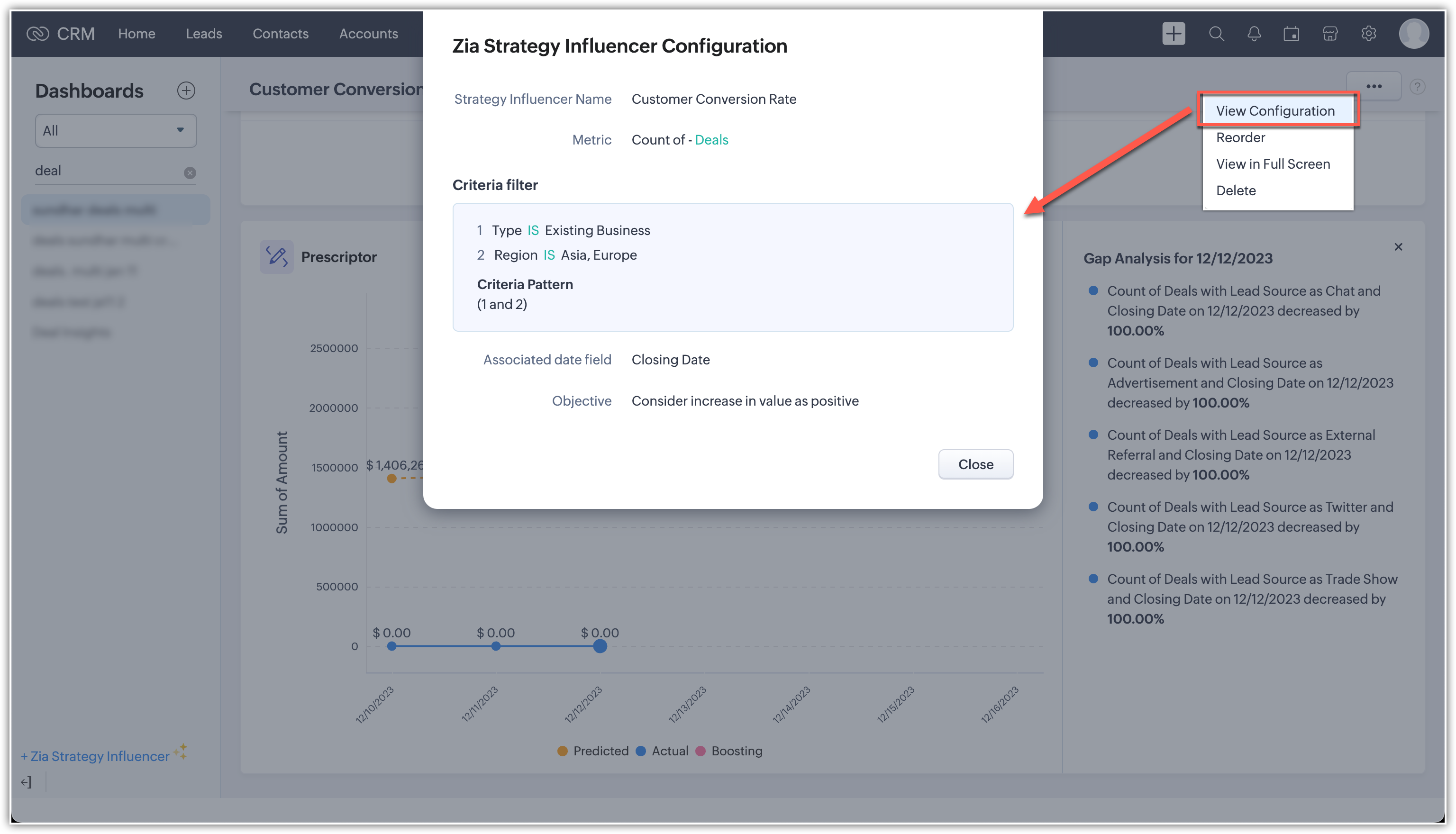 利用条件Ziaを通じた目標達成要因分析は、Zoho CRMの