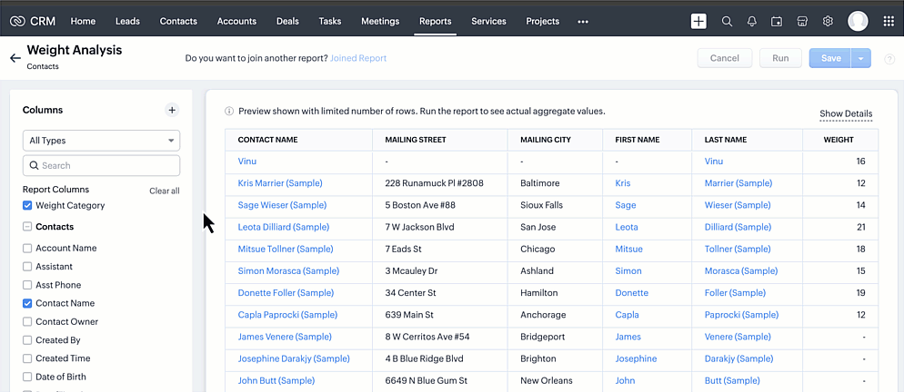 - [レポート]タブに移動し、カテゴリー列を追加するレポートを選択します。