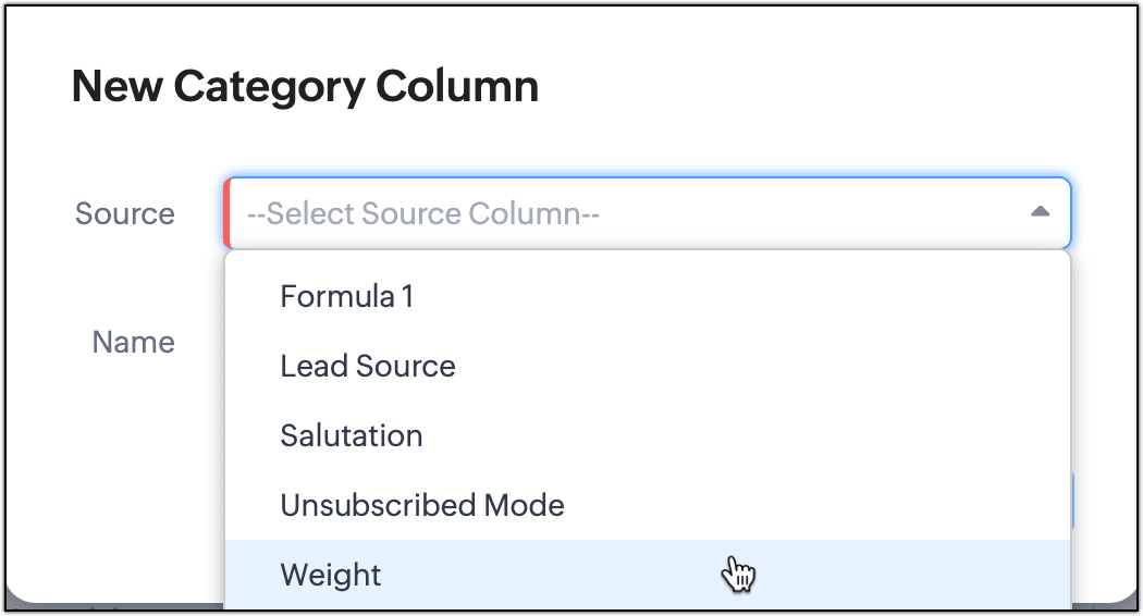 Zoho CRMでは、以下の2種類のカテゴリー列を作成できます。