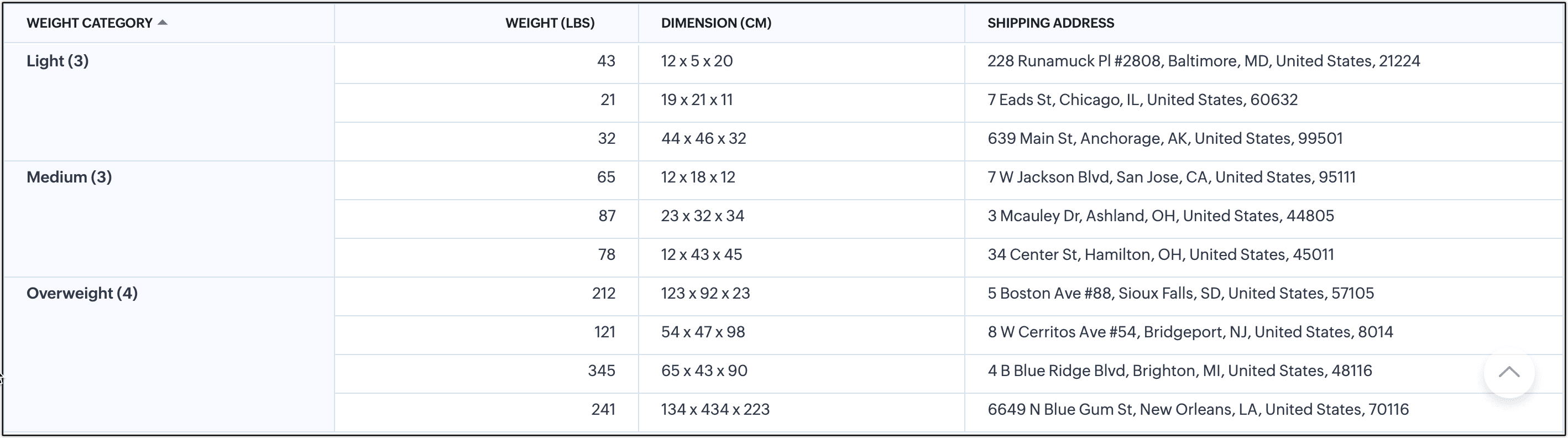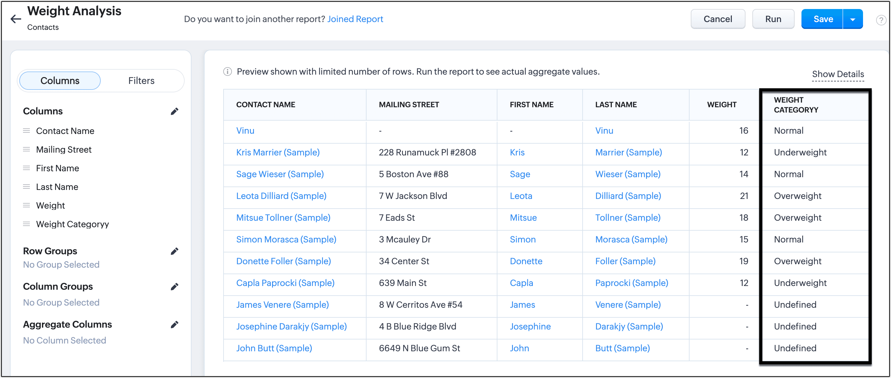 地域の医療担当者が、昨年生まれた1,000人の子どもたちの体重を分析しています。この分析の目的は、幼少期における病気へのかかりやすさを調査することです。このレポートに含まれる項目は、子どもの名前、住所、体重、身長です。レポートを分かりやすくするため、体重を標準的な指標にもとづいて、低体重、普通、肥満の3つのカテゴリーに分類します。このように個々の数値をグループ化することで、大量のデータから全体の傾向などを見つけやすくなります。