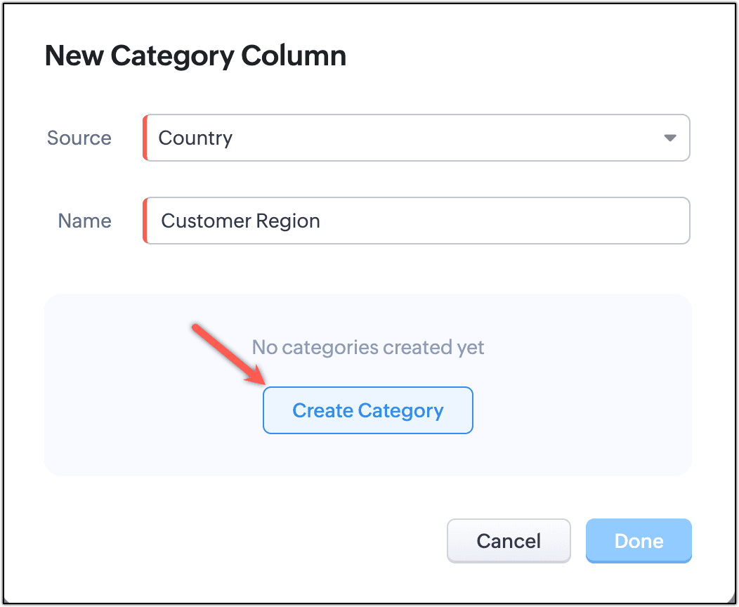 - 新しいカテゴリー列の名前を入力します。[カテゴリーを作成する]をクリックします。この例では、カテゴリー列の名前を[顧客の地域]とします。