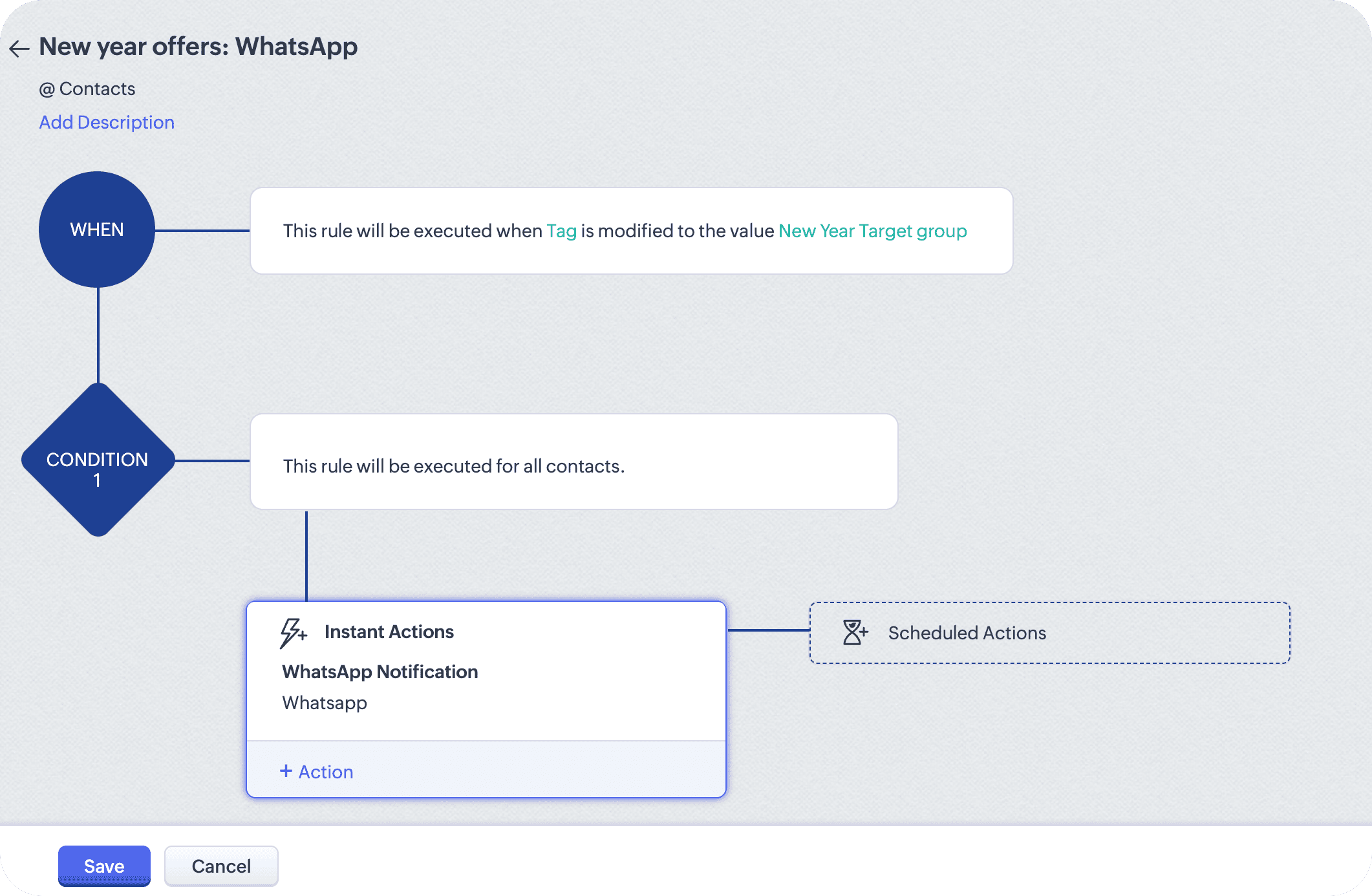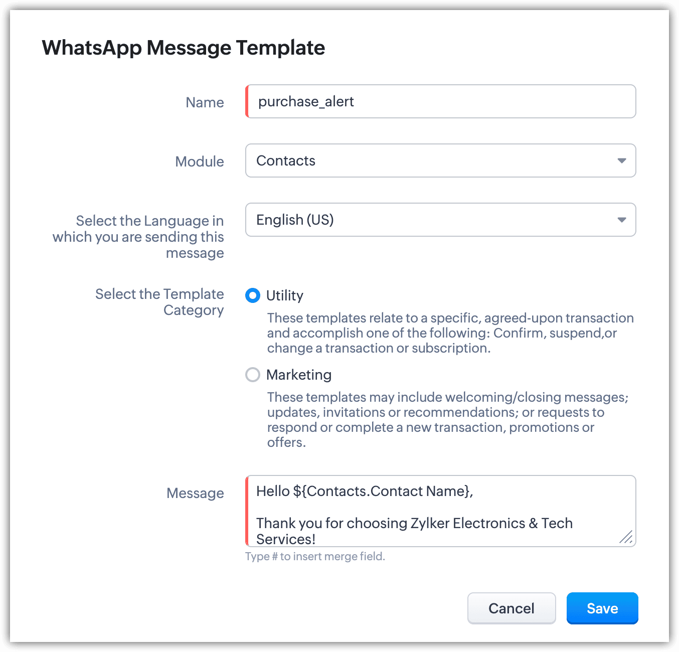 - WhatsAppによって承認されたメッセージのみ、見込み客や連絡先に対して送信できます。