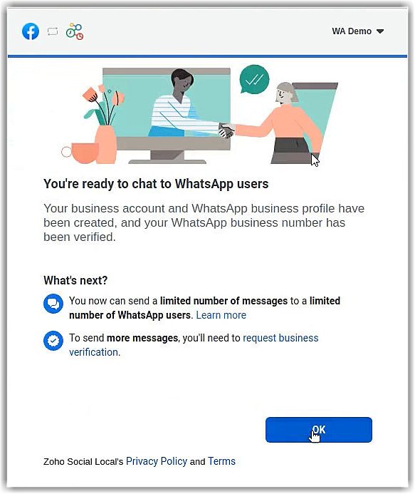 ビジネスの認証後、WhatsAppの利用規約とWhatsAppの商取引規約に準拠しているかどうか確認が行われます。