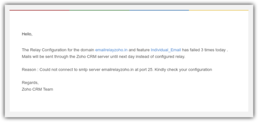 メモ:リレーサーバー経由で送信可能なメールの件数の上限に達した場合、その後のメールはZoho CRMのサーバーから送信されます。
