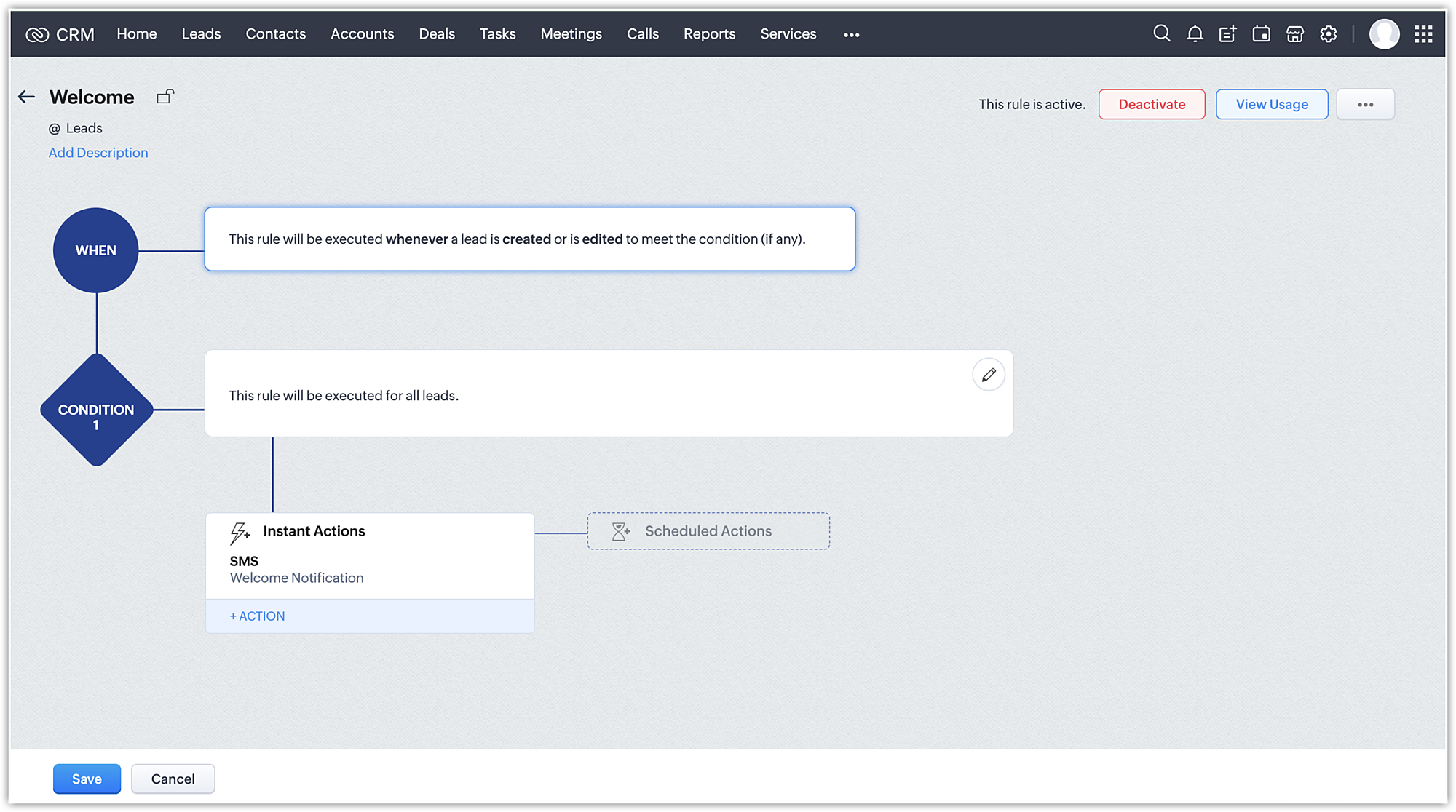 - Zoho CRMとSMS(ショートメッセージ)を連携すると、インド国内の顧客に対してSMSで通知を送信できます。利用には、インド電気通信規制庁の分散型台帳のポータルにおける利用登録が必要です。