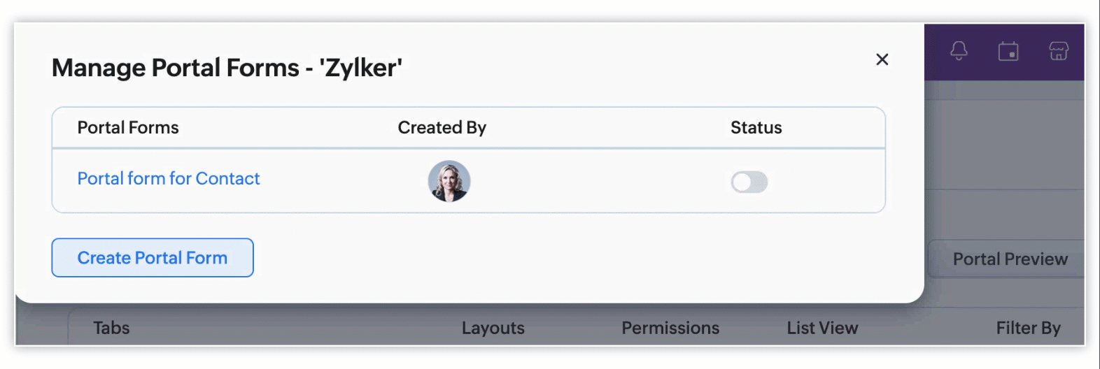 ポータルは、Zoho CRMユーザー以外の人(顧客、協力会社、販売代理店、仕入先など)がZoho CRMのデータを表示/編集できる場です。ポータルユーザー(ポータルの利用者)は、権限に応じてタブのデータにアクセスして、データを表示、編集できます。