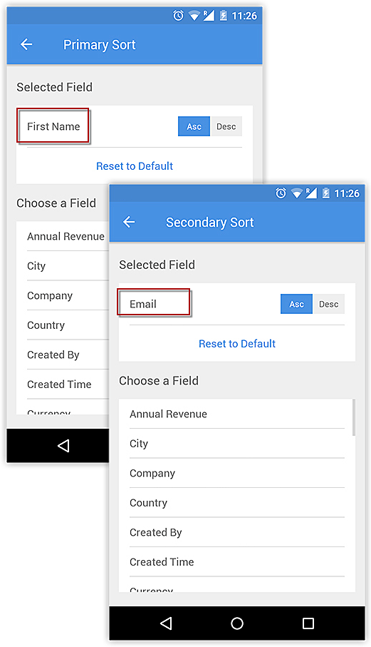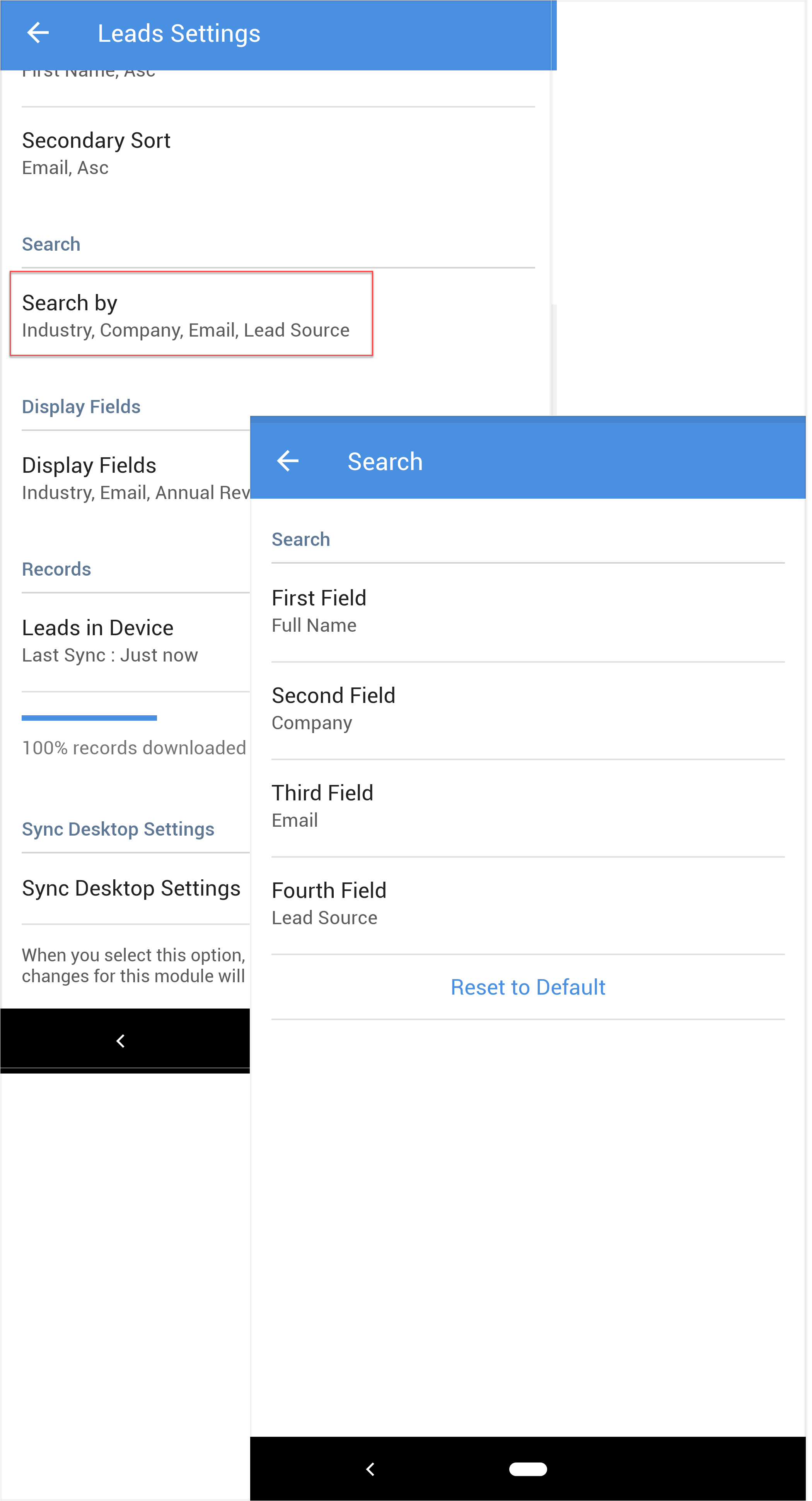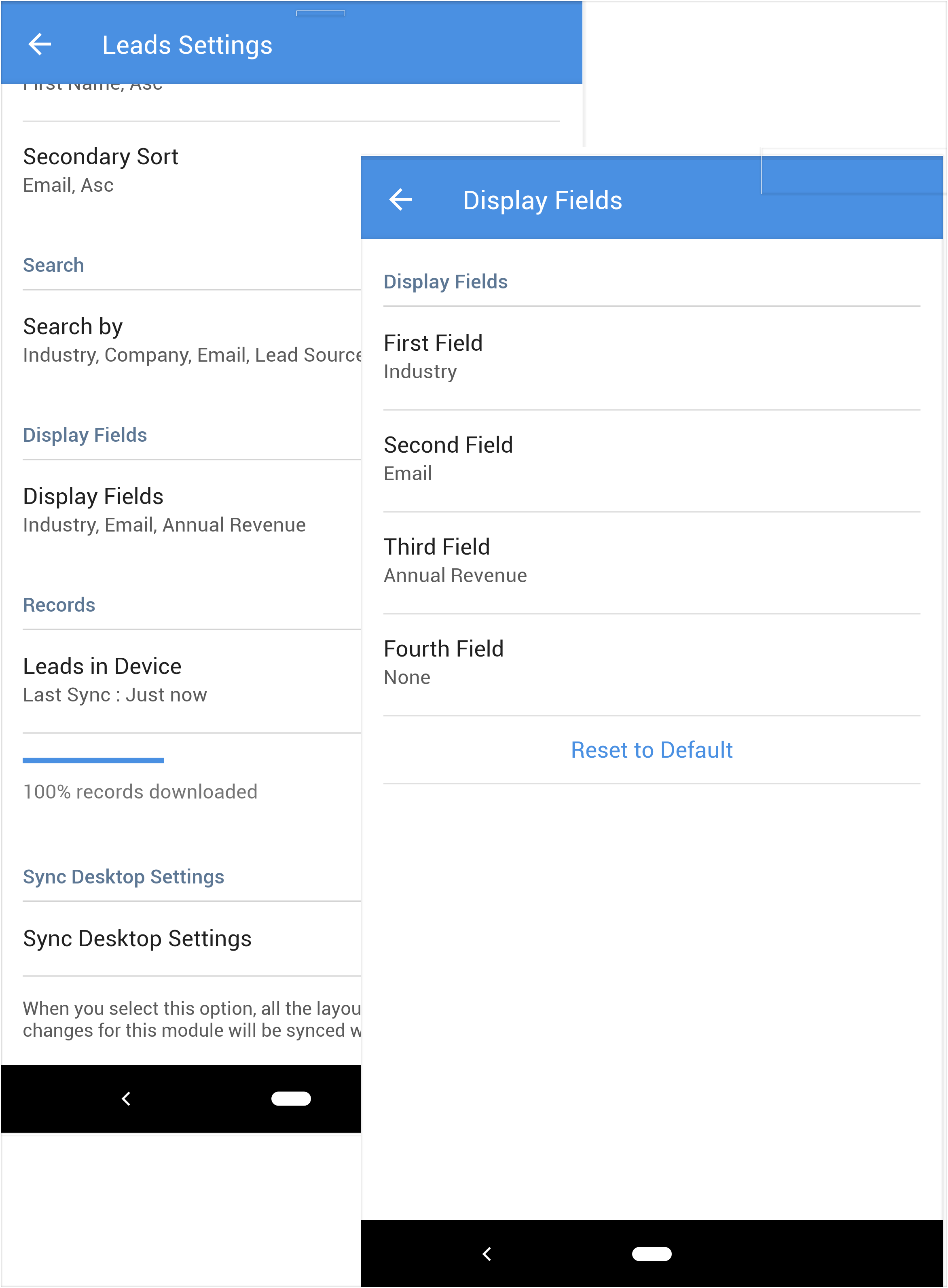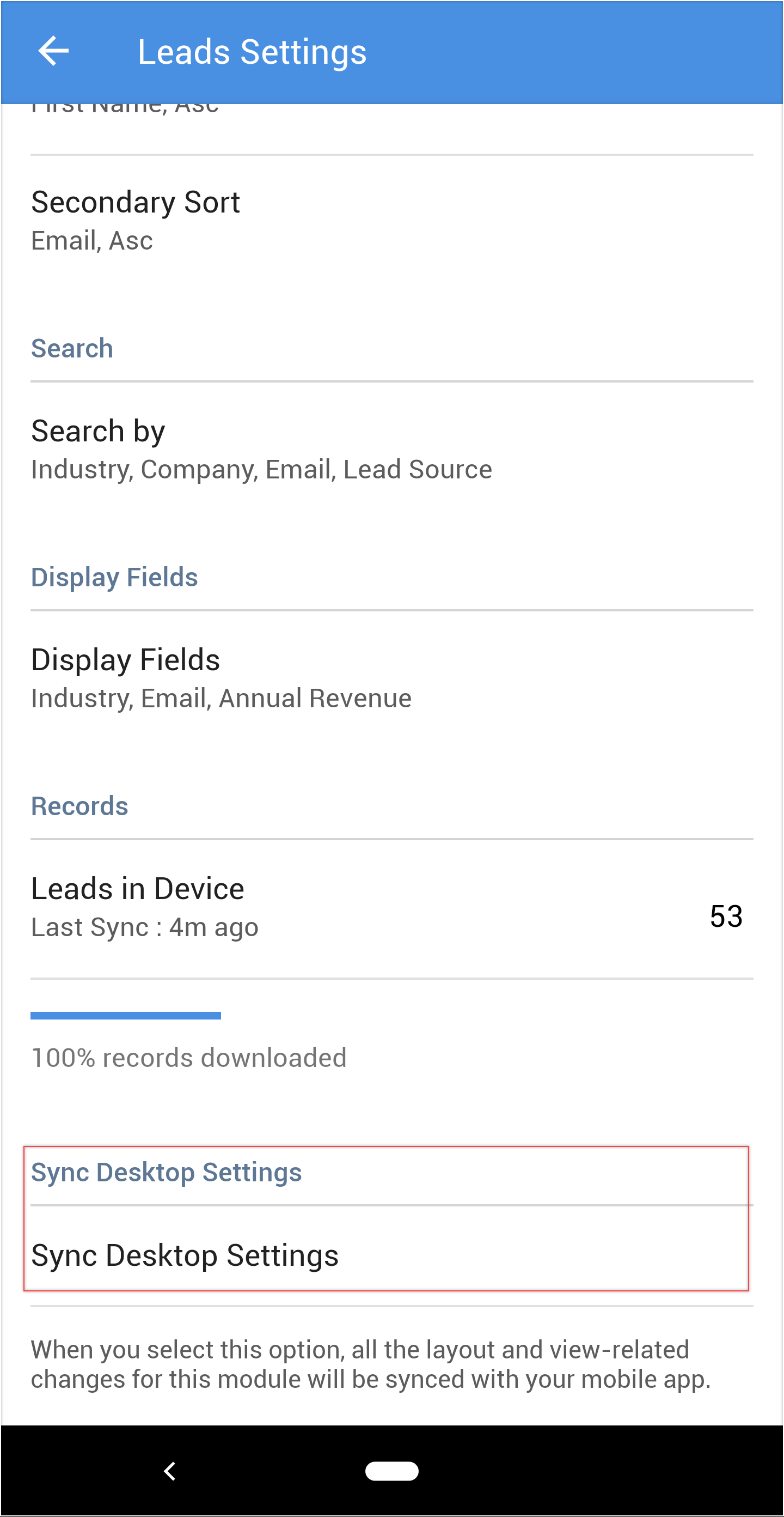 こちらでは、Zoho CRMのWebアプリのタブに関する設定をモバイルアプリと同期することができます。