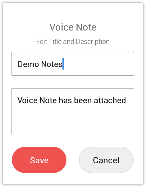 録音の終了後、音声メモの件名と説明を入力します。