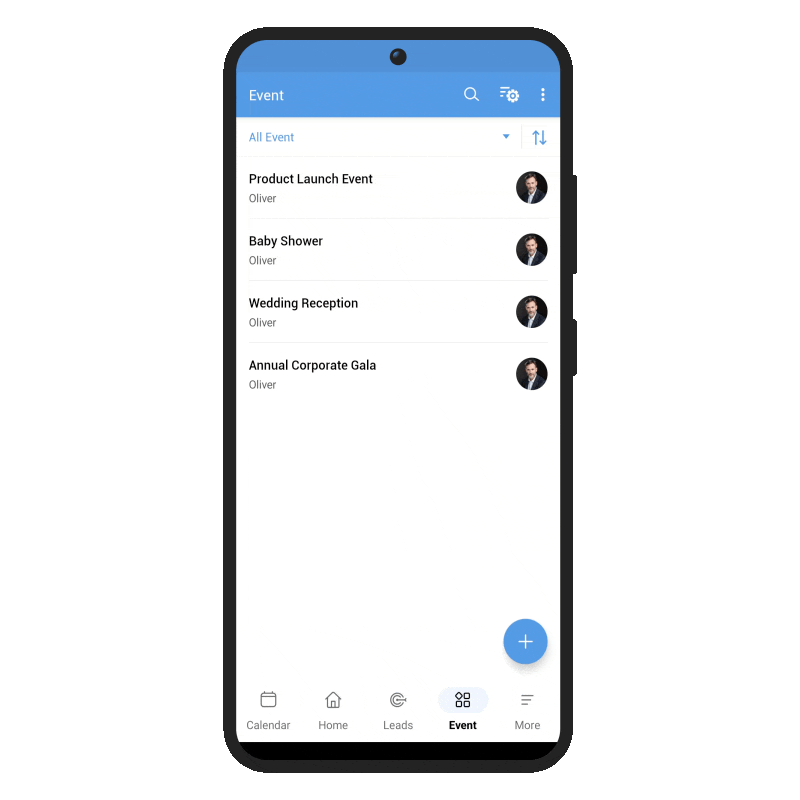 - イベント:このタブでは、イベントに関する情報が管理されています(例:ウェディング、企業ミーティング、音楽フェスティバルなど)。