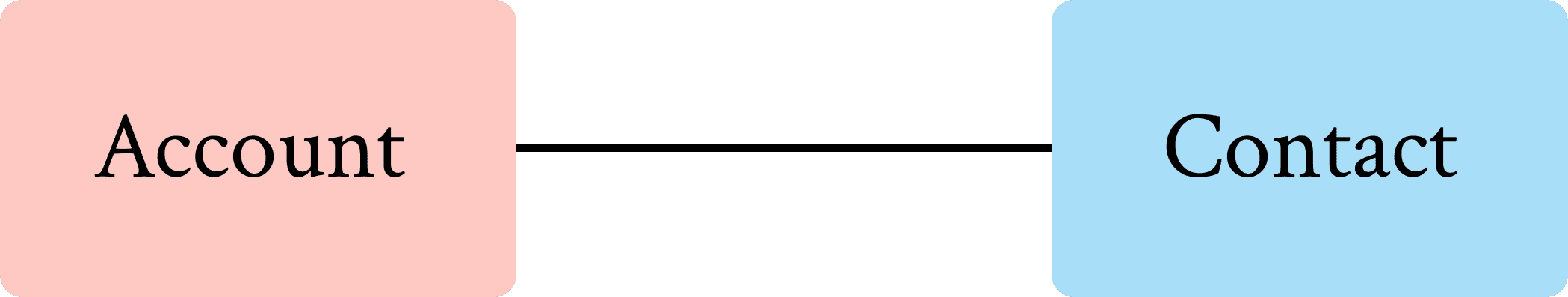 - 1対1の参照関係(単一選択ルックアップ項目):1件のデータに対して、1件のデータを関連付けることができます。たとえば、1件の連絡先に対して、1件の取引先を関連付けることが可能です。