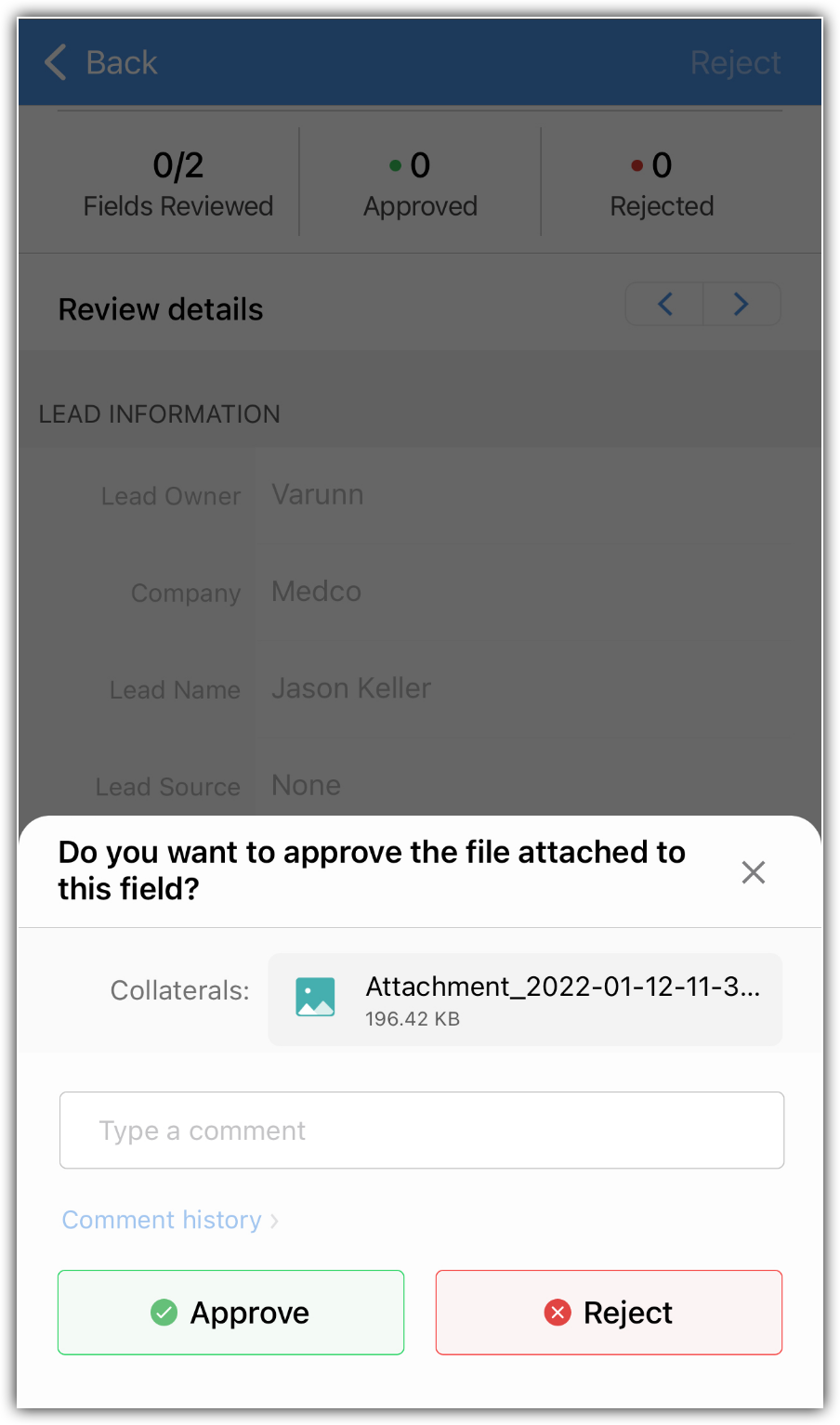 - [却下]をタップします。必要に応じてコメントを追加し、[却下]をタップします。