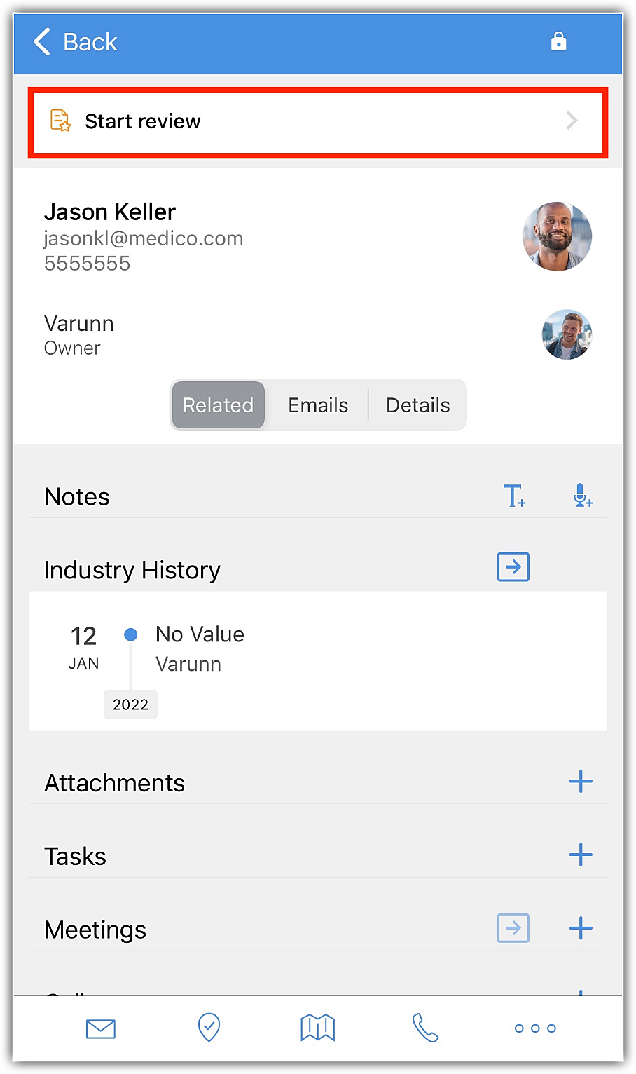 - Zoho CRMアプリで、レビュー対象のデータの詳細ページを開きます。