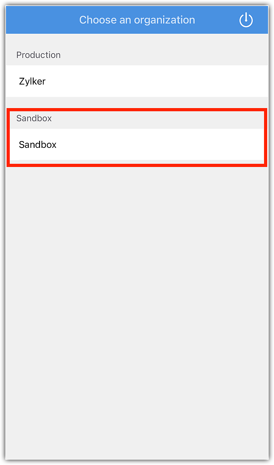 Zoho CRMのモバイルアプリからZoho CRMアカウントにログインする際に、本番環境にログインするか、テスト環境にログインするかを選択できます。