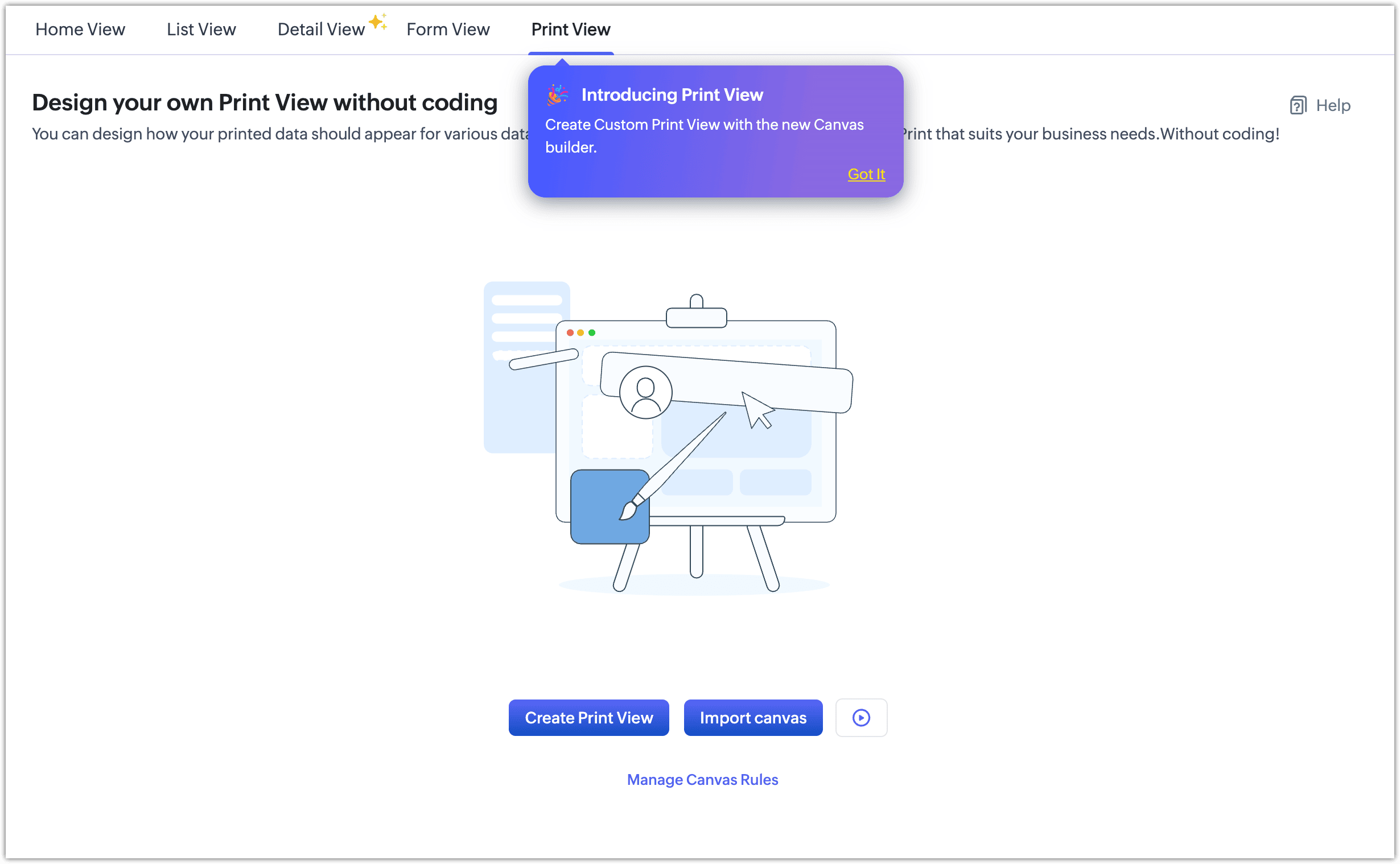 キャンバスの印刷用レイアウトとは、Zoho CRMの各タブに保存されているデータを指定したレイアウトで用紙に印刷するための機能です。この機能を通じて行える主な内容は、以下のとおりです。