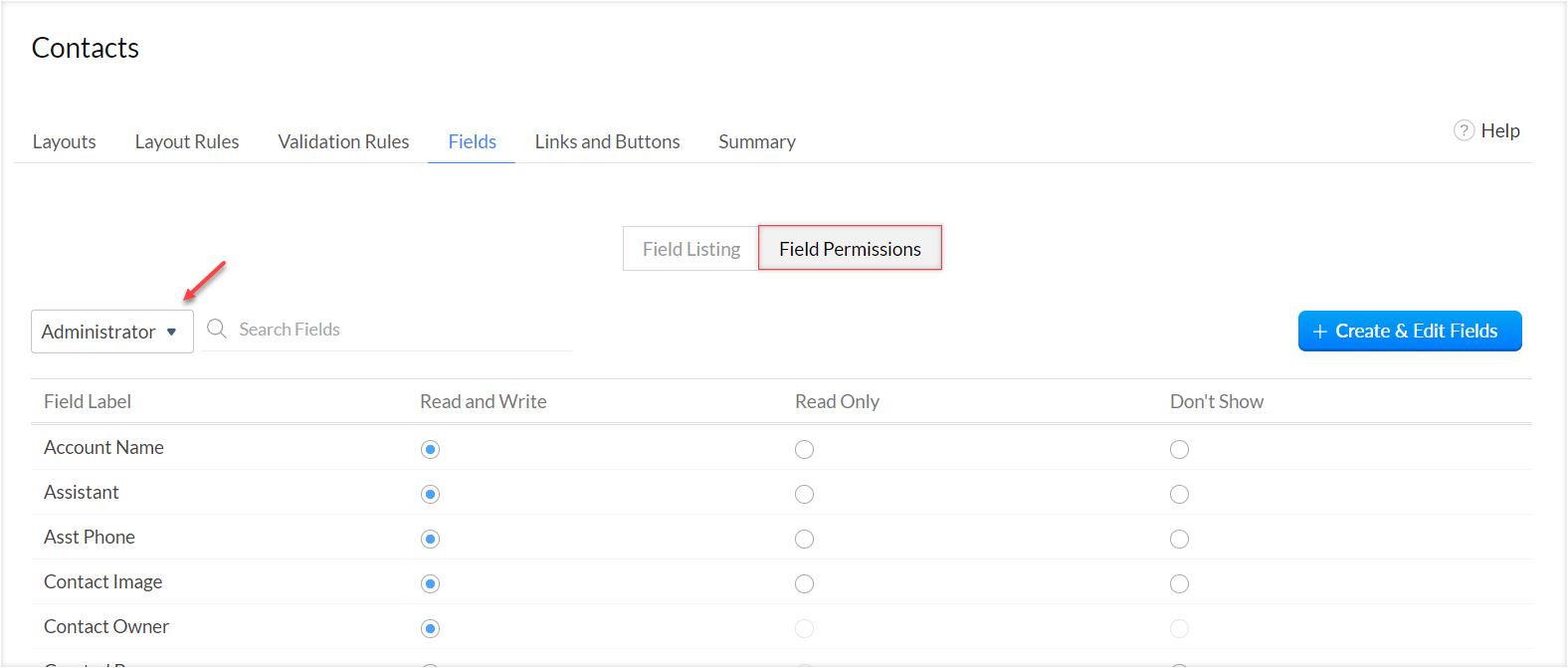 [項目の権限]欄では、ユーザー権限ごとに各項目に対するアクセス権限を設定できます。なお、項目の権限は、項目の作成時にも設定可能です。