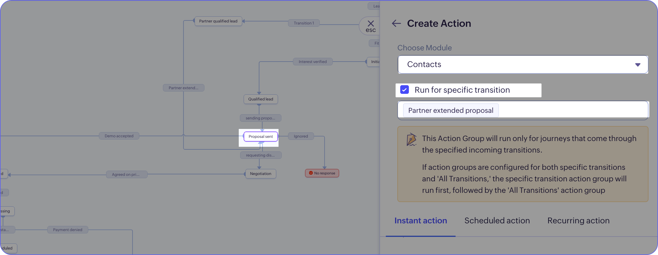 特定の遷移を経由してステージに適用されたデータに関して、処理グループを作成できます。たとえば、パートナーを通じて取得した見込み客に対して、通常とは異なるテンプレートを使用したメッセージを送信したいとします。この場合、処理グループを作成することで、独自のメッセージを送信することが可能です。
