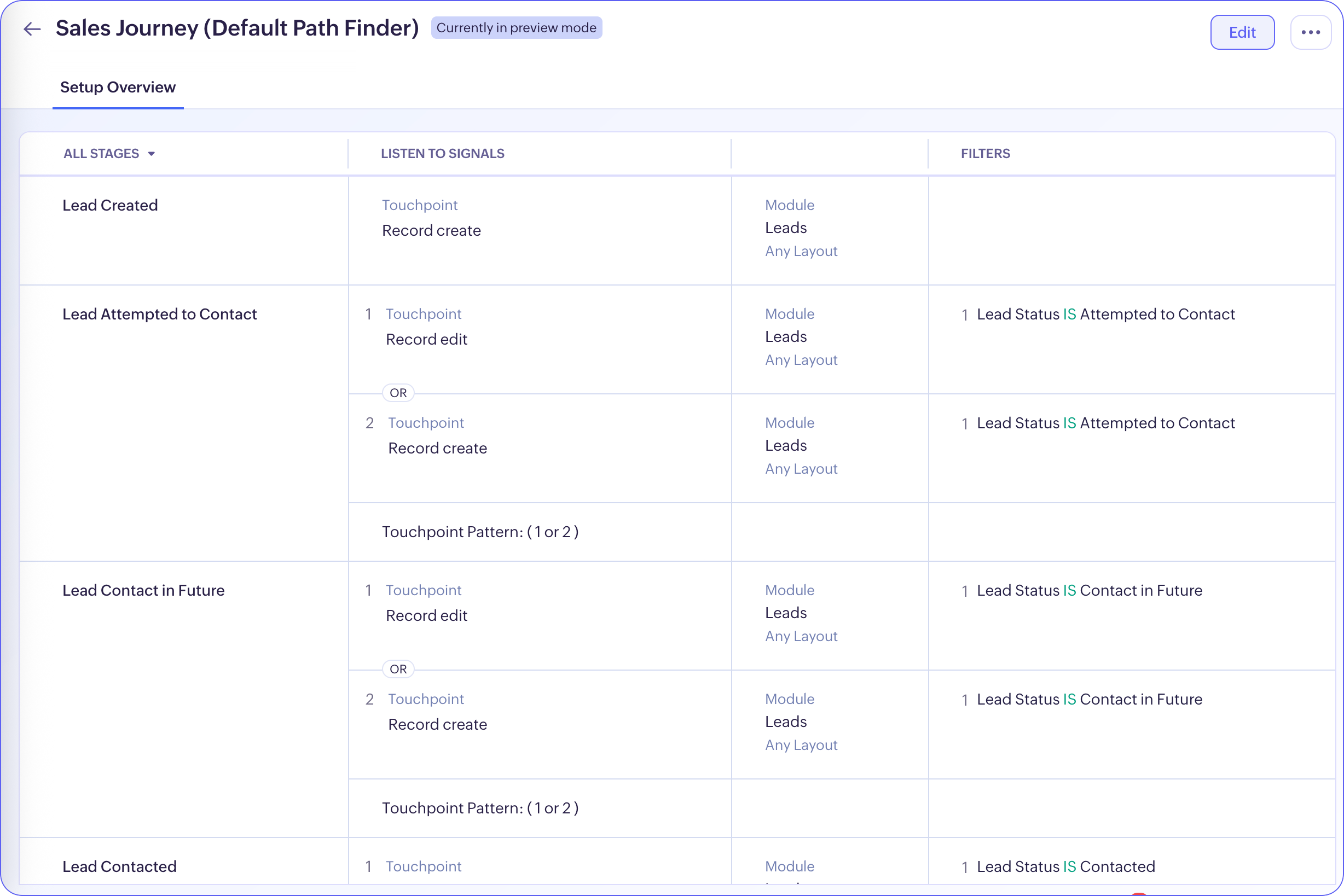 たとえば、見込み客のデータに関して、見込み客から送信されたフォームのデータと、Webサイトの訪問者に関して取得した見込み客のデータを取得したいとします。対象のデータは両方とも見込み客であり、「見込み客」と呼ばれるステージで管理、保存します。しかし、バージョン1.0では各ステージにおいてタブを設定する必要があるため、見込み客から送信されたフォームのデータと、Webサイトの訪問者に関して取得した見込み客のデータの2件分のステージを作成する必要があります。