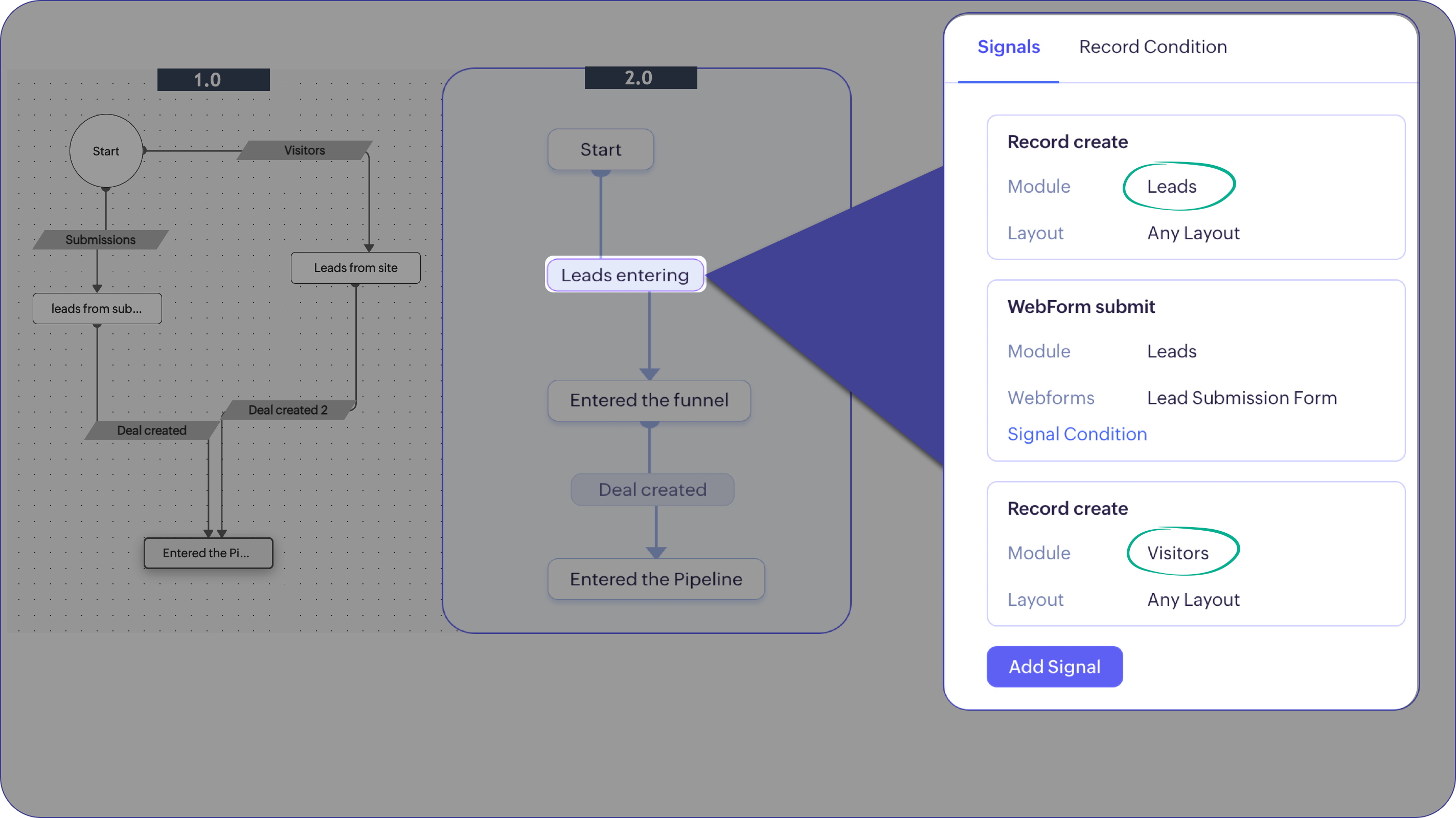- データをより正確に取得するため、実行条件(Triggers)はシグナル(Signals)に変更されました。シグナルとは、さまざまな経路を通じて行われた最新情報を受信、管理するための機能です。